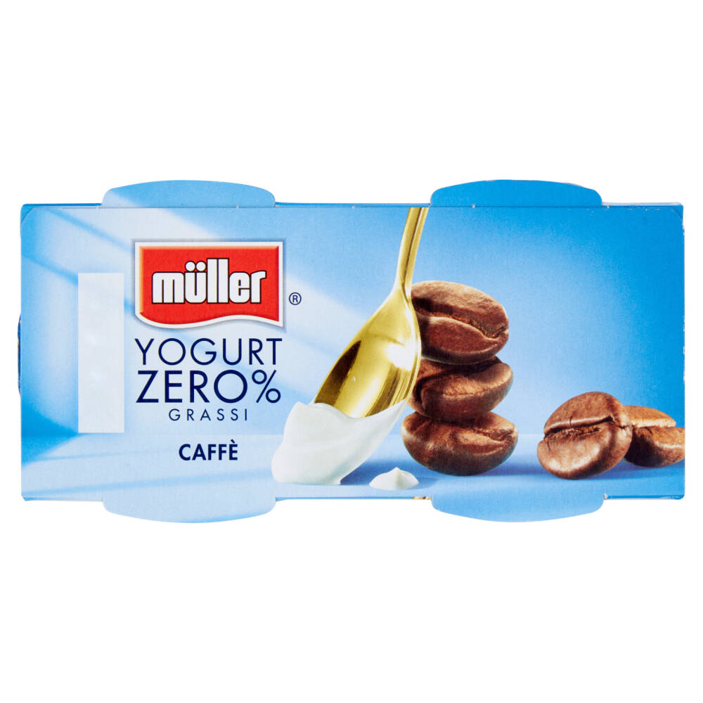 Yogurt magro Preparazione al caffè (acqua, zucchero, amidi, sciroppo di zucchero caramellato, 0,6% estratto di caffè, cacao magro in polvere, aroma) Zucchero Destrosio Aroma naturale Senza glutine