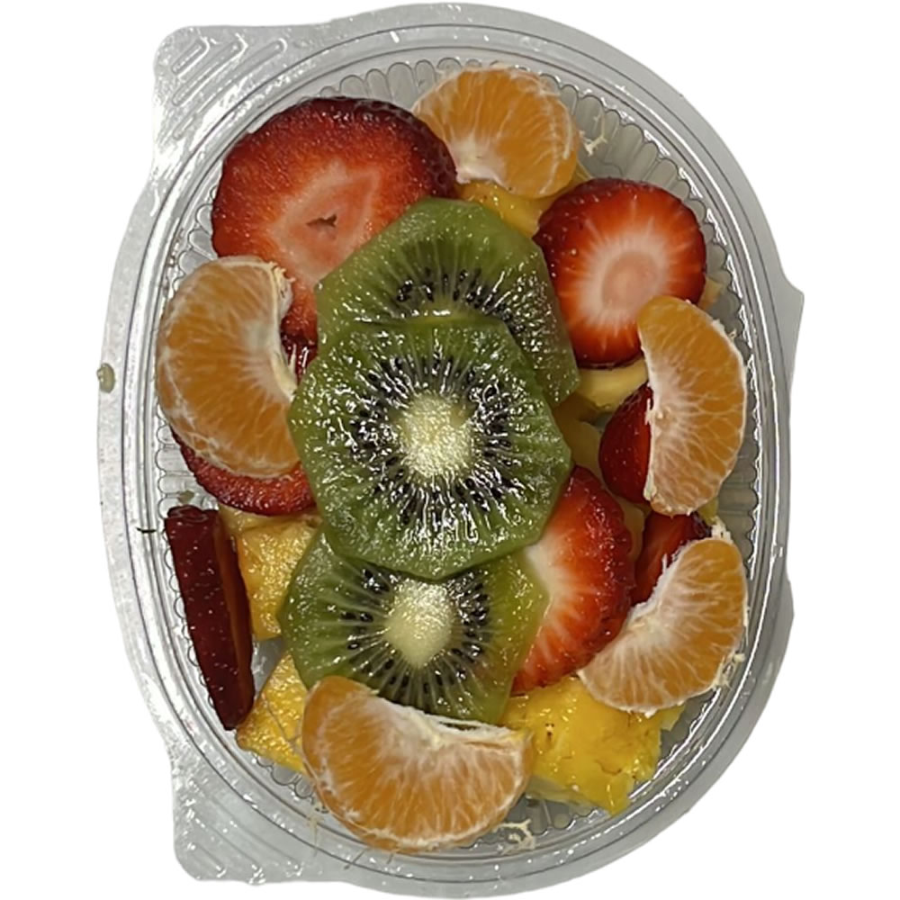 Mix vario tra Ananas, Kiwi, spicchi di Mandarino, Melone Cantalupo, Anguria, Pesca, Uva, Ciliegie.Gli ingredienti che compongono la nostra "Macedonia Fantasy" differiscono in determinati periodi in base alla stagionalità dei prodotti.