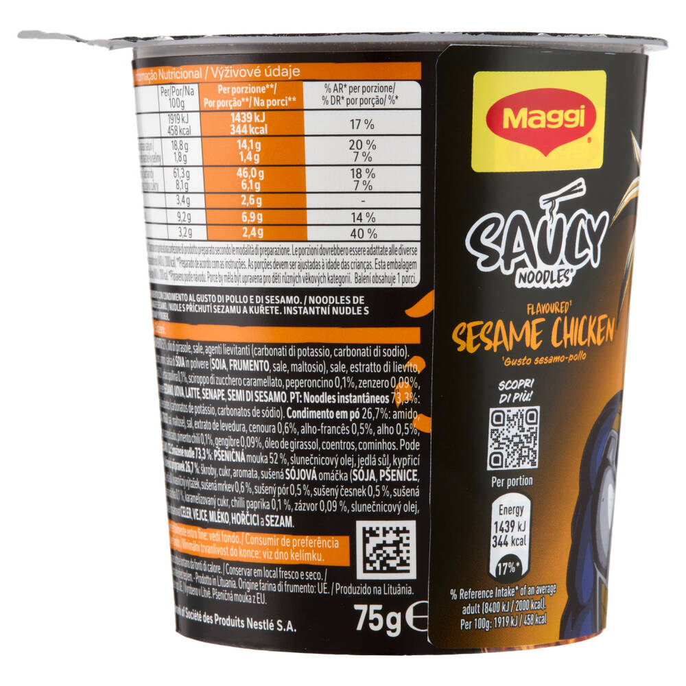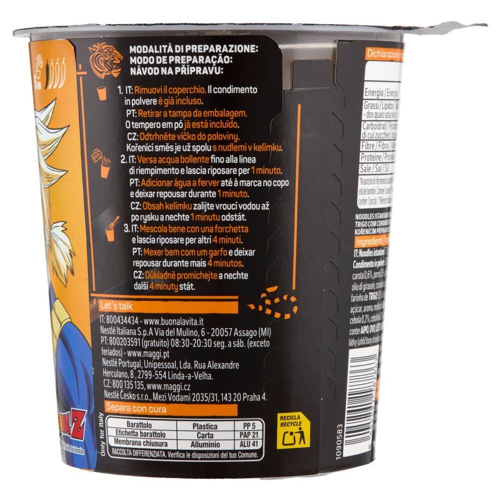 Noodles istantanei 73,3%: farina di frumento 52%, olio di girasole, sale, agenti lievitanti (carbonati di potassio, carbonati di sodio)