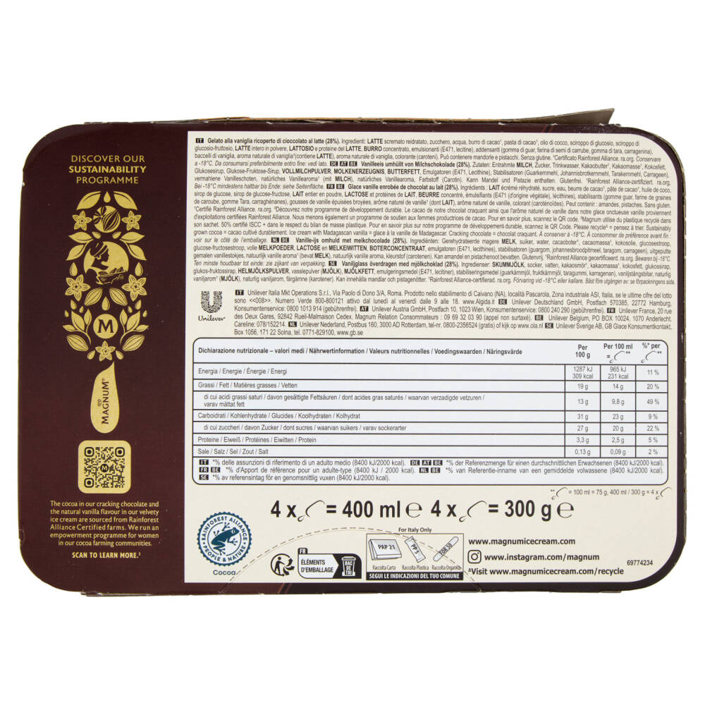 | **gelato = 100 ml = 75 g, 400 ml / 300 g = 4 x gelato |