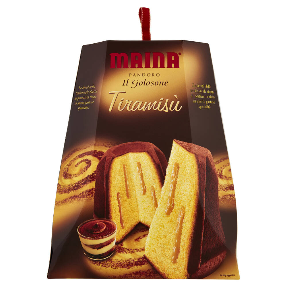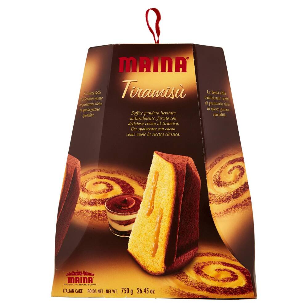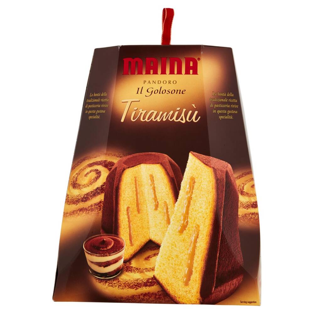 Soffice pandoro lievitato naturalmente, farcito con deliziosa crema al tiramisù. Da spolverare con cacao come vuole la ricetta classica.