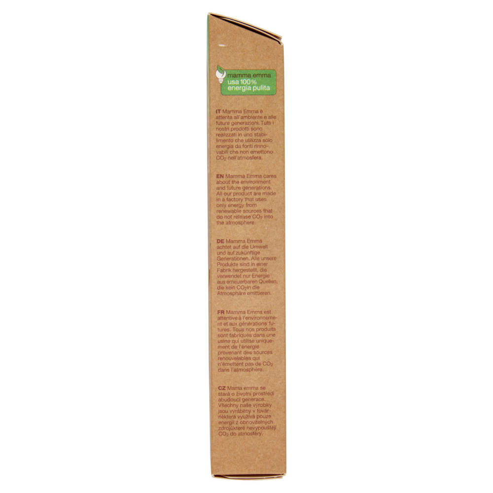 Mamma Emma è attenta all'ambiente e alle future generazioni. Tutti i nostri prodotti sono realizzati in uno stabilimento che utilizza solo energia da fonti rinnovabili che non emettono CO₂ nell'atmosfera.