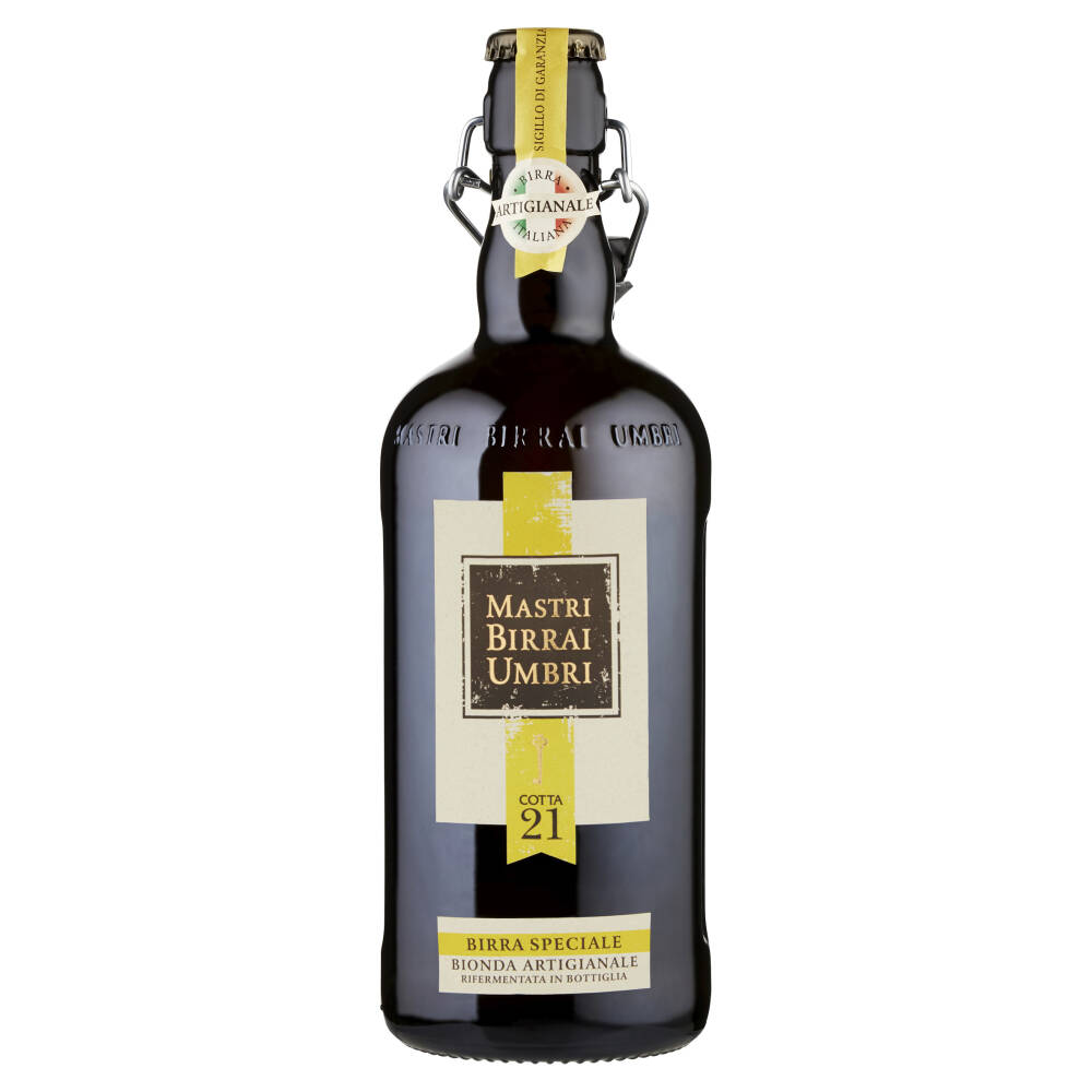 La Bionda non filtrata Mastri Birrai Umbri nasce dalla ricetta Cotta 21, creata dalla selezione dei migliori farri e malti italiani, ricca di sentori agrumati, note speziate e di frutta gialla.