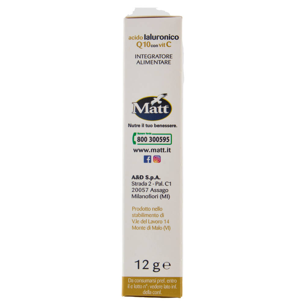 La bellezza della pelle può essere influenzata da diversi fattori: smog, raggi solari, fumo, alimentazione, o semplicemente l'avanzare dell'età, che possono renderla spenta, poco tonica e compatta. Acido laluronico Q10 con Vitamina C è un integratore alimentare specificatamente formulato per contribuire al mantenimento della bellezza della pelle. La sua esclusiva formulazione racchiude un prezioso mix a base di Acido laluronico, componente fondamentale della pelle, Q10, elemento prodotto dal nostro organismo ma che tende a diminuire con l'età, e Vitamina C. La Vitamina C contribuisce alla protezione delle cellule dallo stress ossidativo e supporta la regolare formazione del collagene per la normale funzione della pelle. L'Acido laluronico favorisce l'elasticità e la compattezza della pelle.