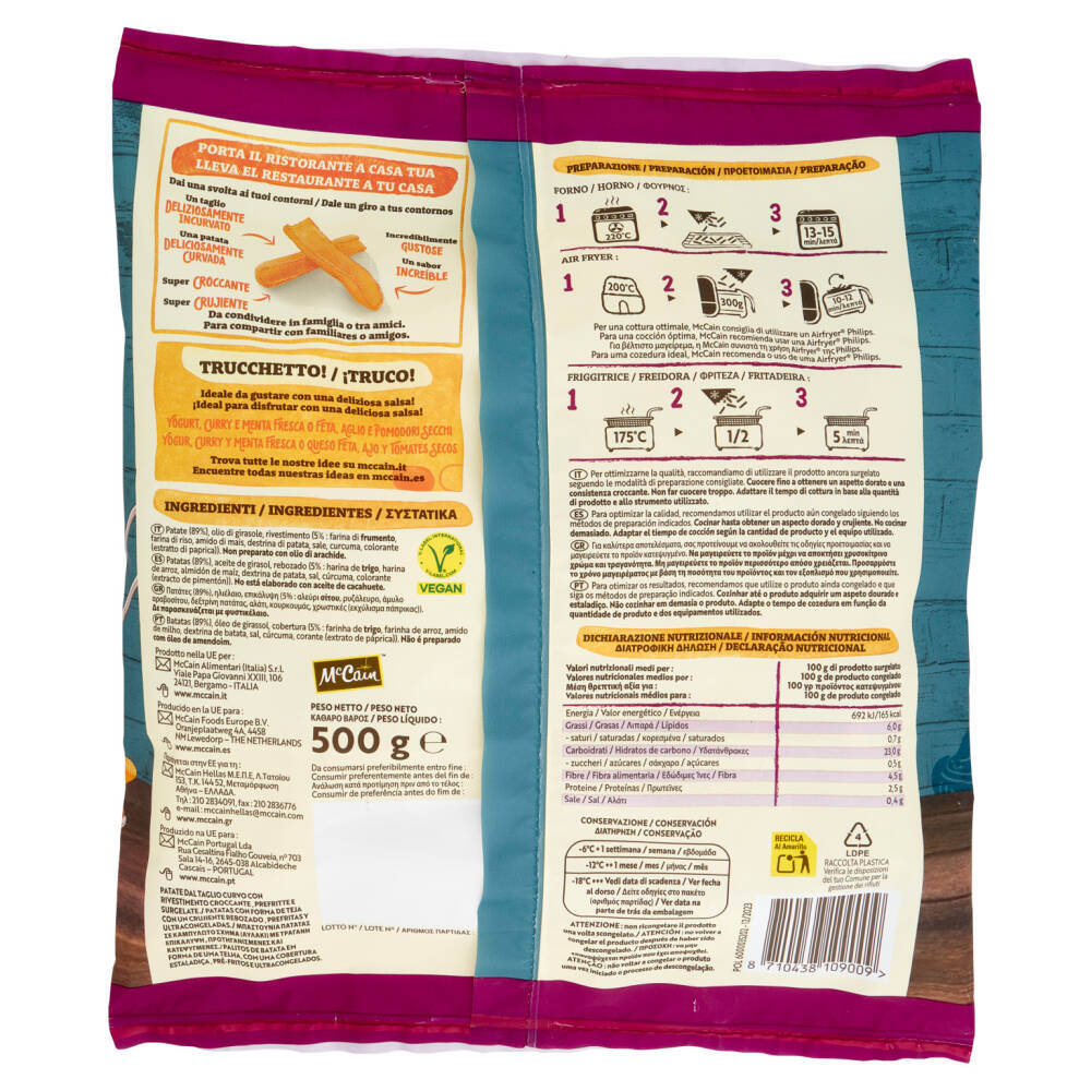 Patate dal taglio curvo con rivestimento croccante, prefritte e surgelate