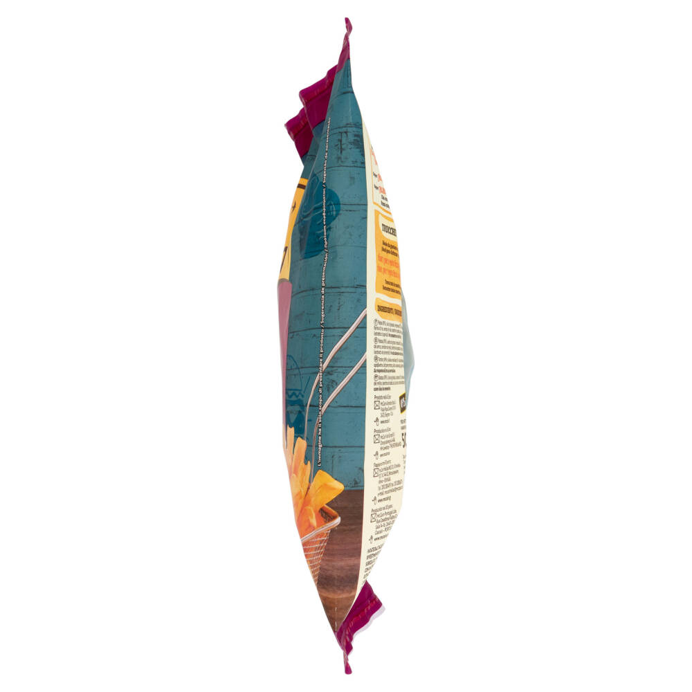 Patate (89%) Olio di girasole Rivestimento (5%: farina di frumento, farina di riso, amido di mais, destrina di patata, sale, curcuma, colorante (estratto di paprica)) Non preparato con olio di arachide