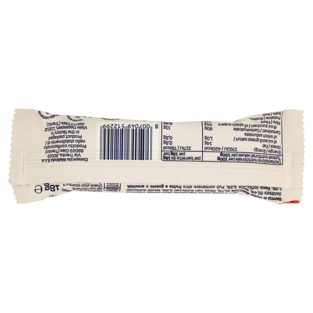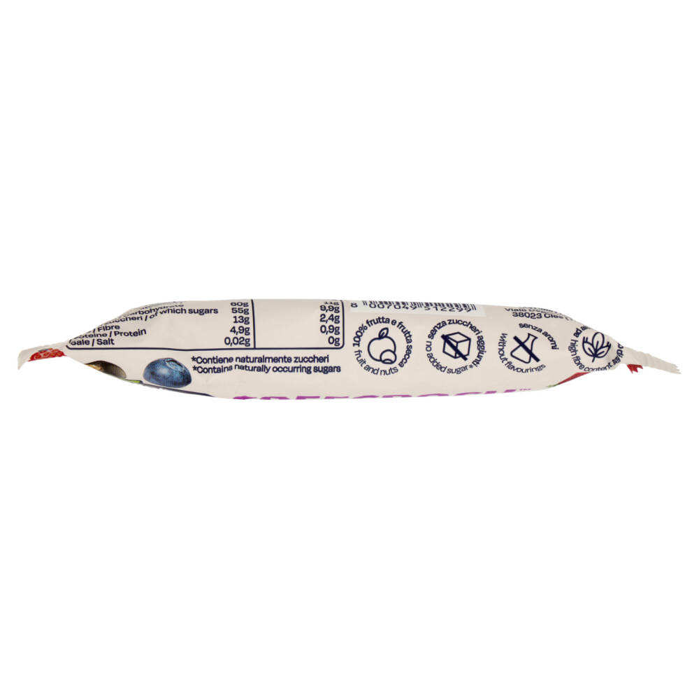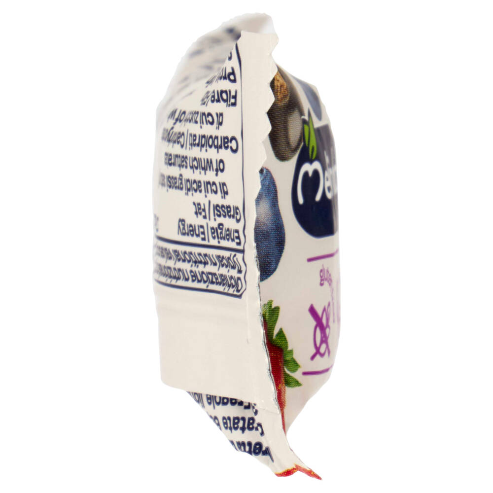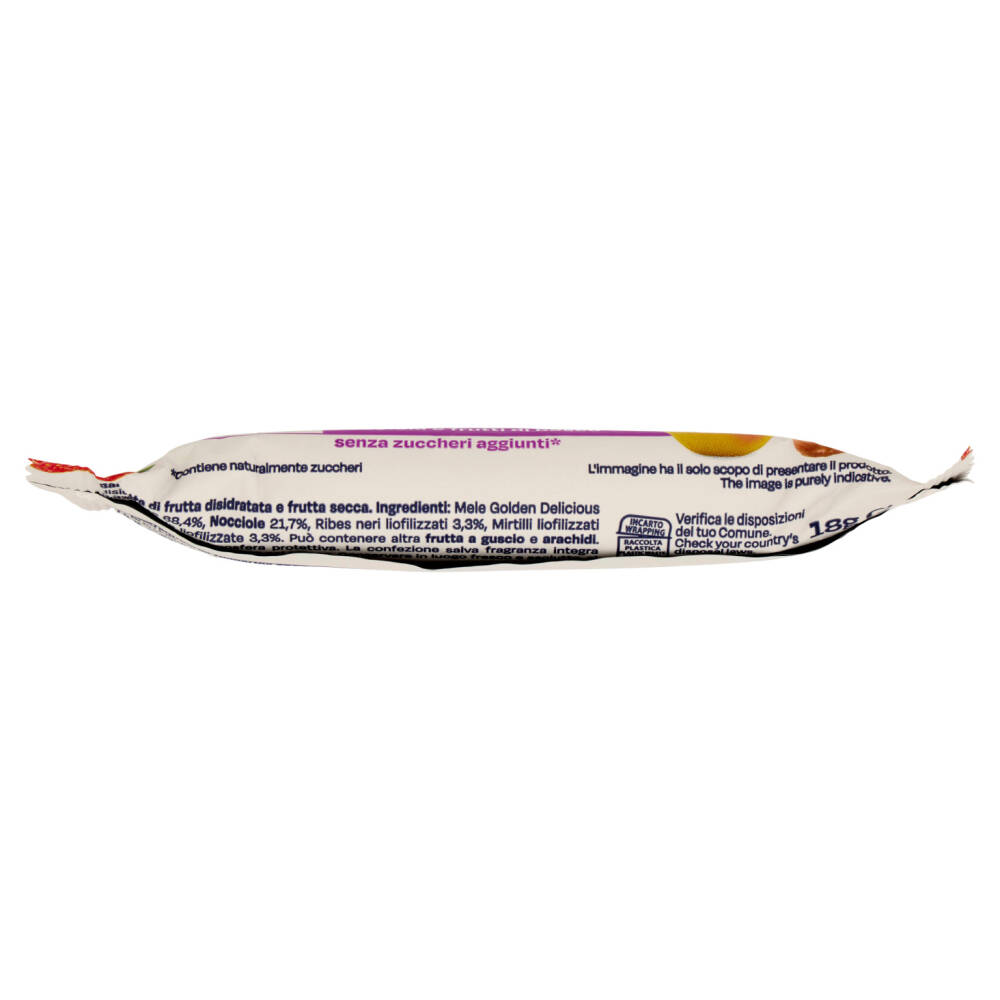 Mele Golden Delicious disidratate 68,4% Nocciole 21,7% Ribes neri liofilizzati 3,3% Mirtilli liofilizzati 3,3% Fragole liofilizzate 3,3% Può contenere altra frutta a guscio e arachidi