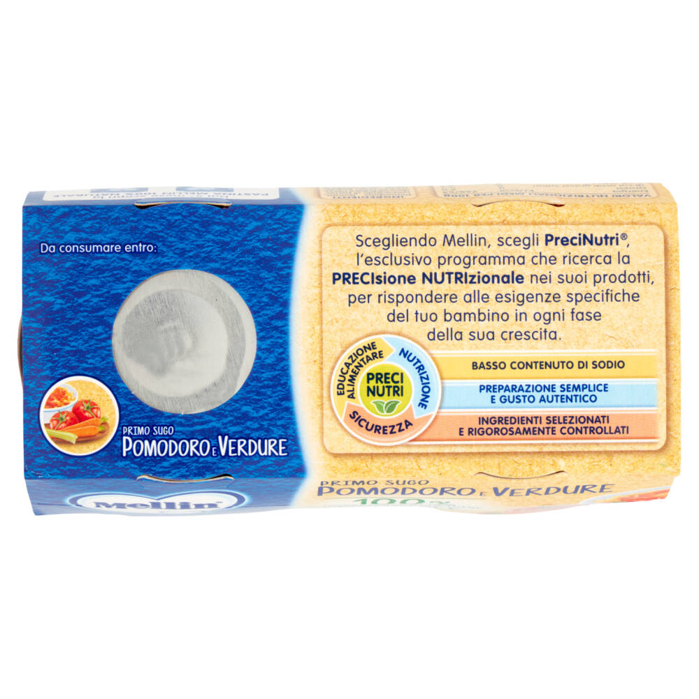 Modalità di utilizzo: Dopo aver tolto il tappo, scaldare a bagnomaria o nel microonde un vasetto di Primo Sugo Mellin e aggiungere alla pasta.