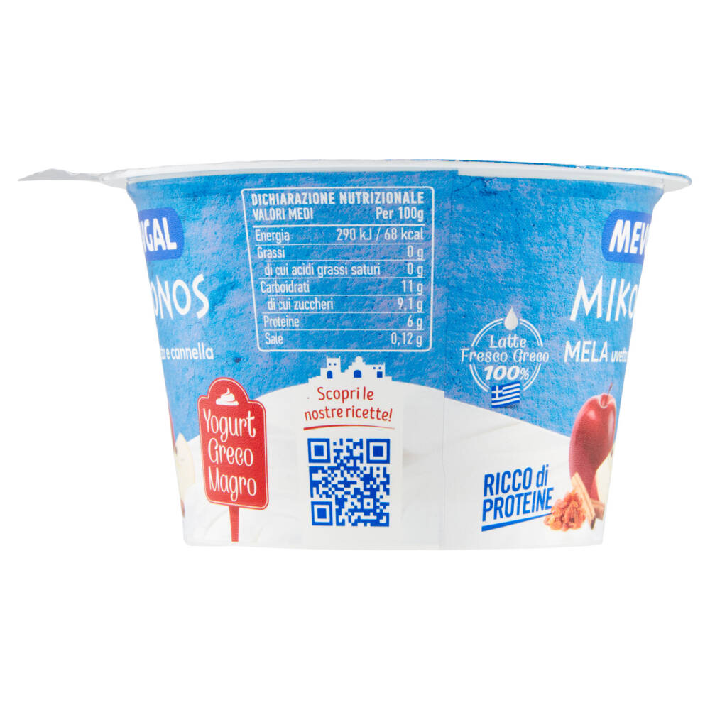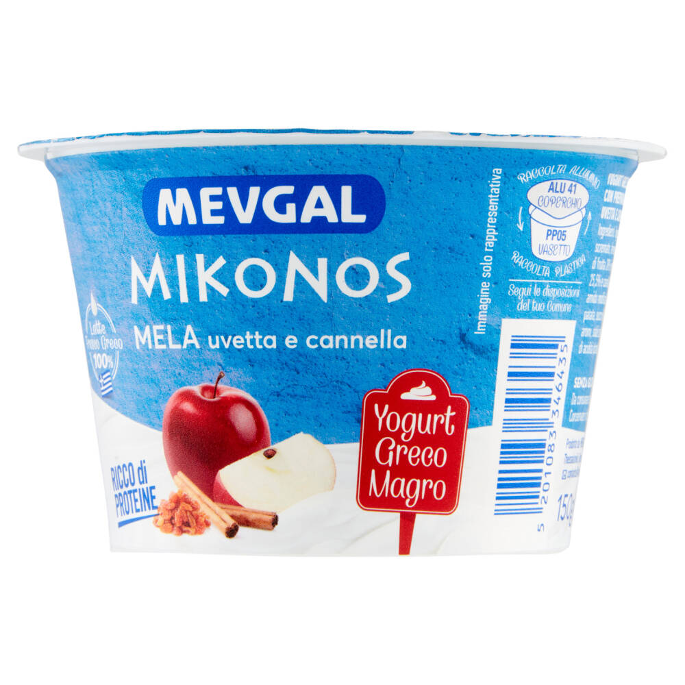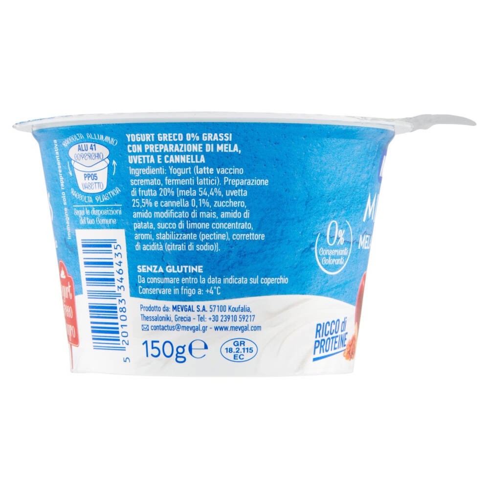 Yogurt (latte vaccino scremato, fermenti lattici) Preparazione di frutta 20% [mela 54,4%, uvetta 25,5% e cannella 0,1%, zucchero, amido modificato di mais, amido di patata, succo di limone concentrato, aromi, stabilizzante (pectine), correttore di acidità (citrati di sodio)] SENZA GLUTINE