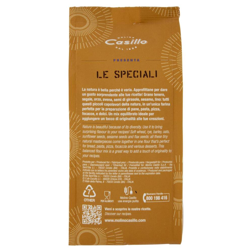 La natura è bella perché è varia. Approfittane per dare un gusto sorprendente alle tue ricette! Grano tenero, segale, orzo, avena, semi di girasole, sesamo, lino: tutti questi piccoli capolavori della natura, in un'unica farina perfetta per la preparazione di pane, pasta, pizza, focacce, e dolci. Un mix equilibrato ideale per aggiungere un tocco di originalità alle tue creazioni.