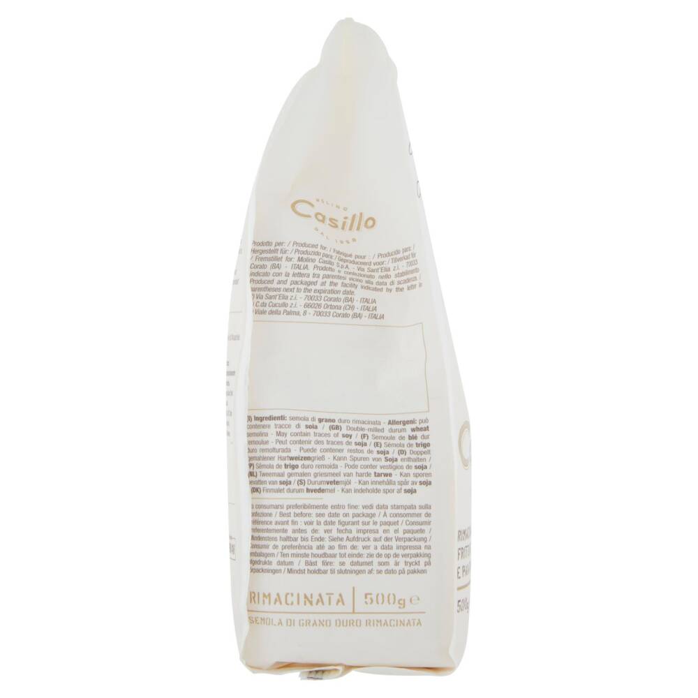 Impanare, friggere e poi... assaporare! Per gioire a ogni morso, questa è la semola giusta. La sua finezza, ottenuta dalla rimacinazione di grano duro 100% italiano accuratamente selezionato, rende le tue preparazioni croccanti e asciutte. Ideale per le fritture di pesce e verdure, la nostra semola dona ai tuoi piatti un sapore ricco di componenti aromatiche e tutta la fragranza del grano appena raccolto.