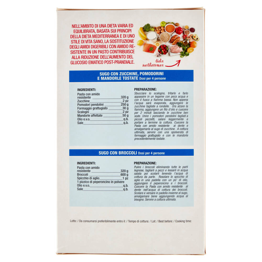 Fonte di proteine Ricca di fibre Senza glutine Specificamente formulato per persone intolleranti al glutine Cottura 7/8 minuti La sostituzione di amidi digeribili con amido resistente in un pasto, contribuisce alla riduzione dell'aumento del glucosio ematico post-prandiale