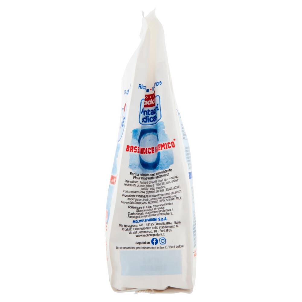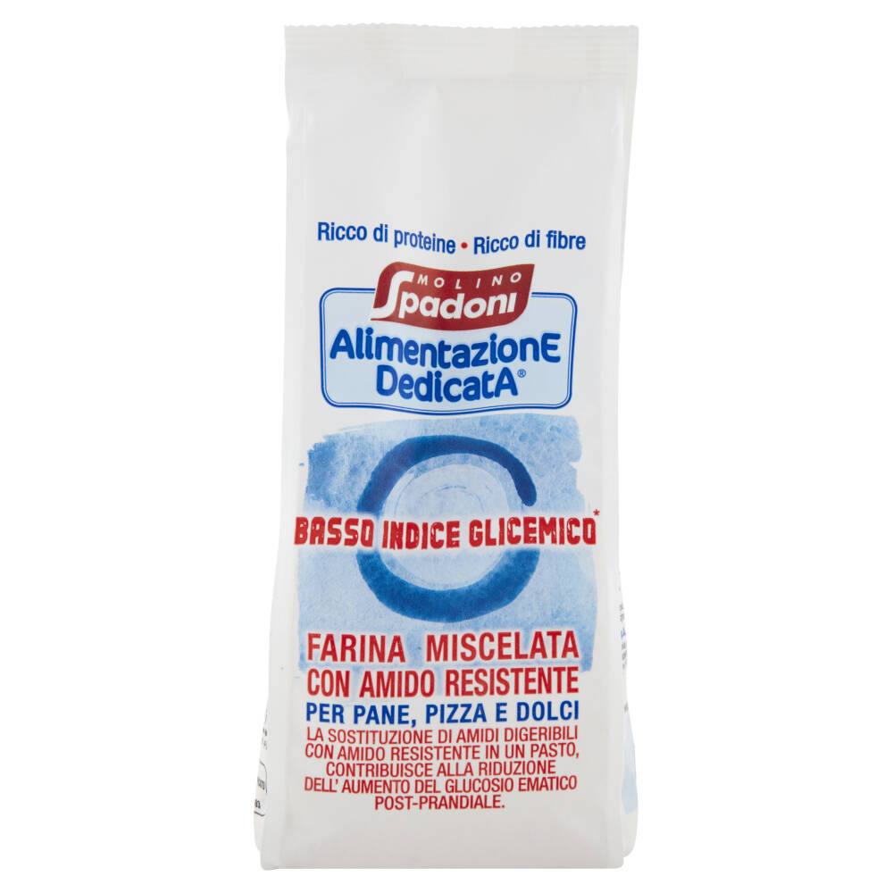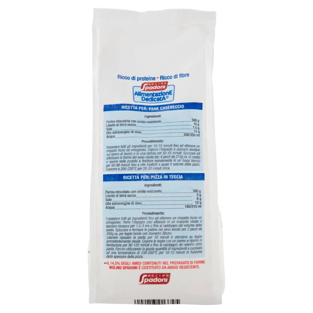 Farina di grano tenero tipo 1 **Amido resistente di mais Glutine di frumento Inulina Antiossidante: acido ascorbico Può contenere soia, senape, lupino, sesamo, latte **Il 14,5% degli amidi contenuti nel preparato di farine Molino Spadoni è costituito da amido resistente