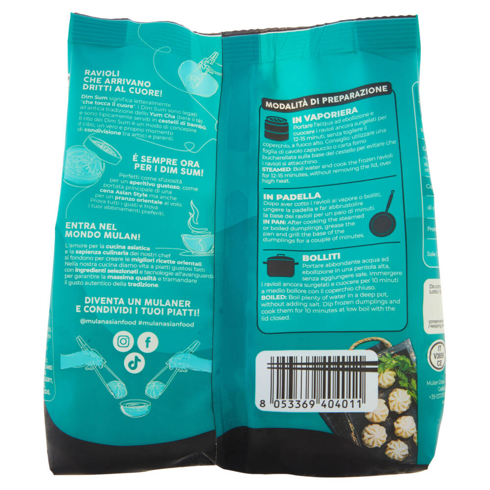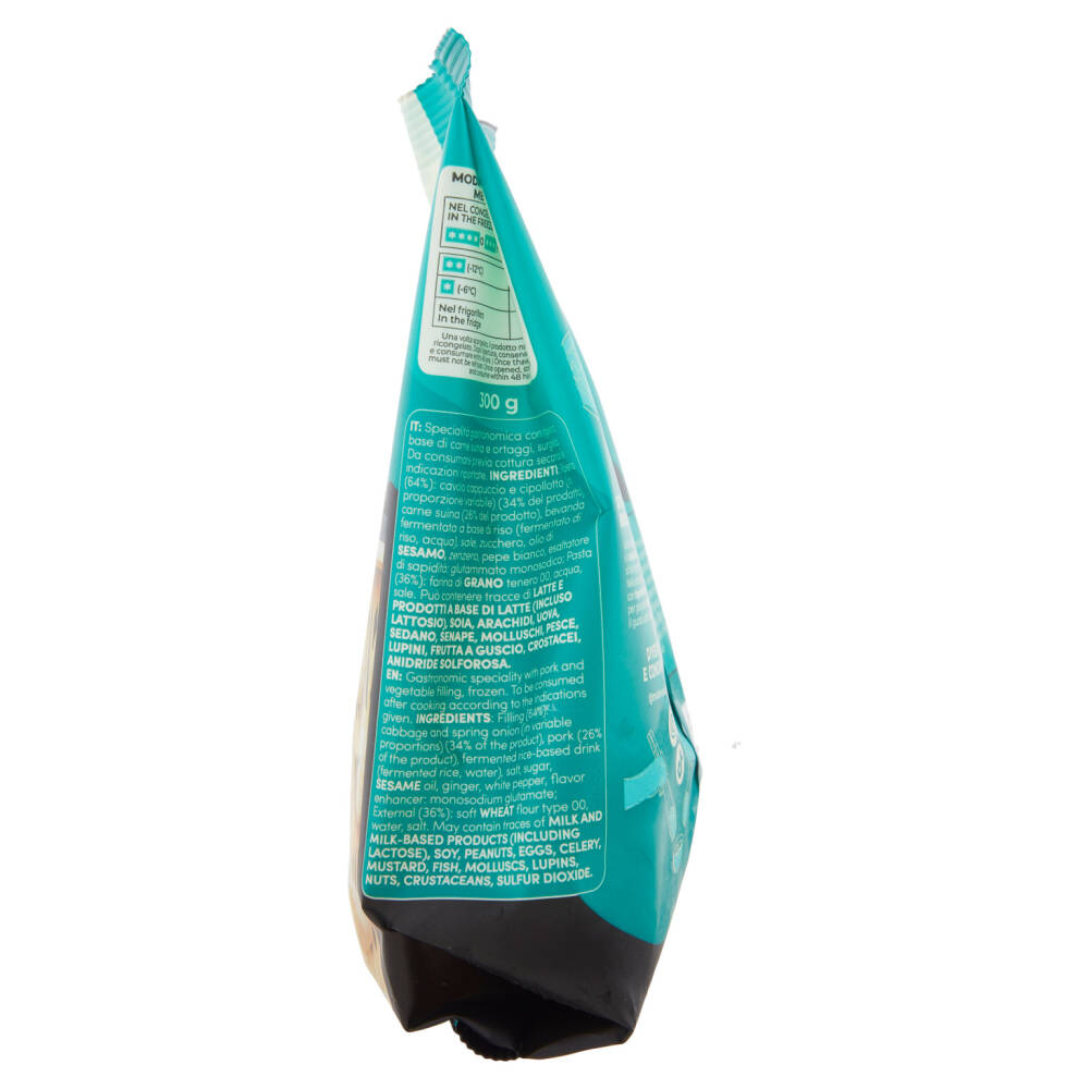 Ripieno (64%): cavolo cappuccio e cipollotto (in proporzione variabile) (34% del prodotto), carne suina (26% del prodotto), bevanda fermentata a base di riso (fermentato di riso, acqua), sale, zucchero, olio di sesamo, zenzero, pepe bianco, esaltatore di sapidità: glutammato monosodico
