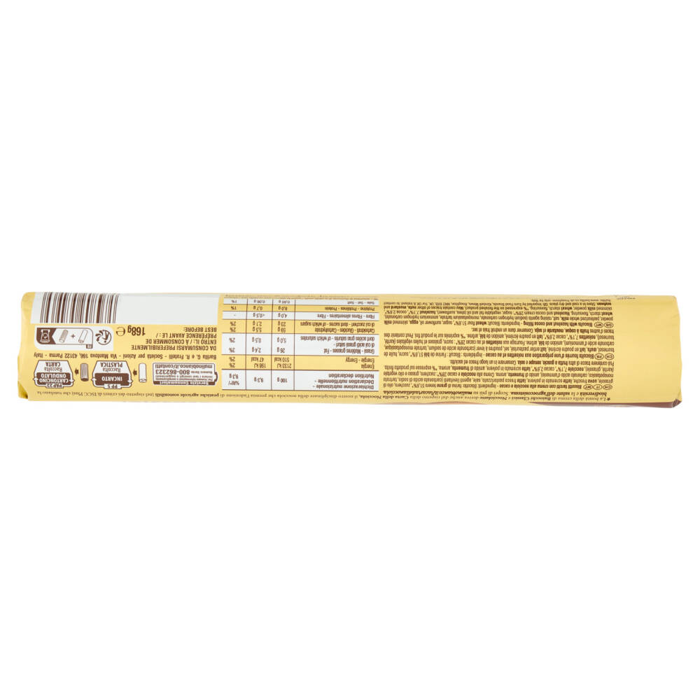 Biscotto: farina di grano tenero 51,6%*, zucchero, olio di girasole, uova fresche, latte scremato in polvere, latte fresco pastorizzato, agenti lievitanti (carbonato acido di sodio, tartrato monopotassico, carbonato acido d'ammonio), amido di frumento, aroma