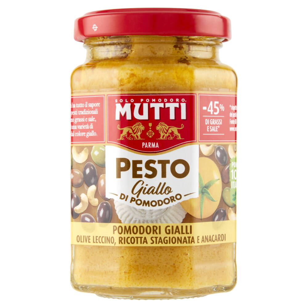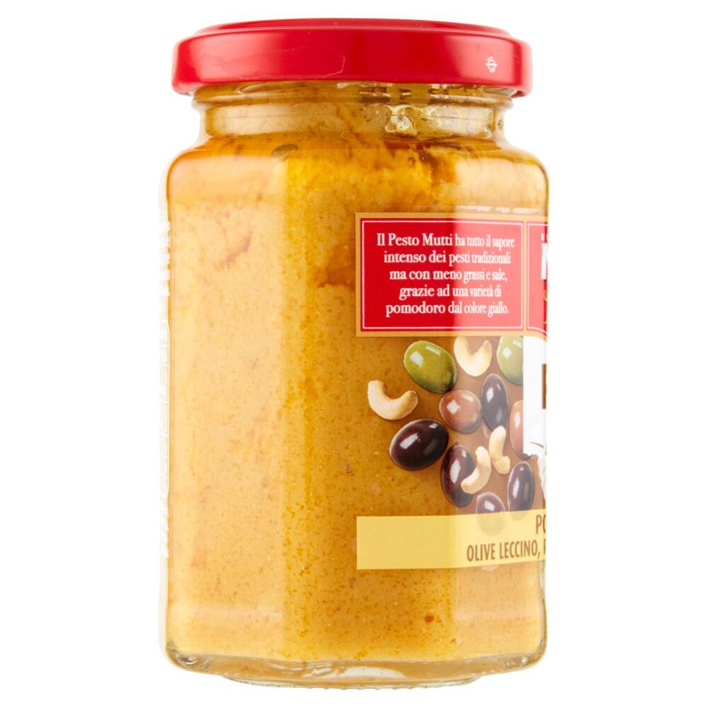 Il Pesto Mutti ha tutto il sapore intenso dei pesti tradizionali ma con meno grassi e sale, grazie ad una varietà di pomodoro dal colore giallo.