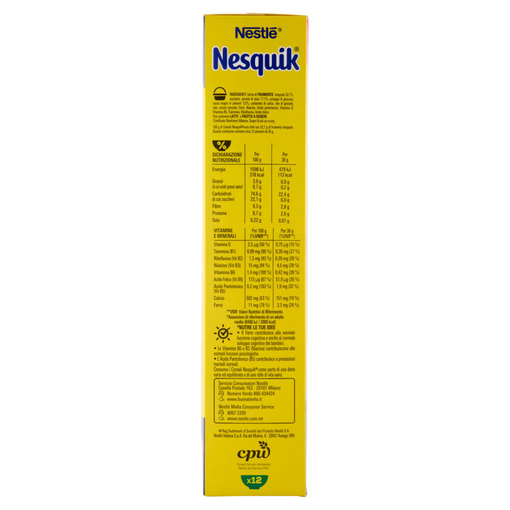 | 100 g di Cereali NESQUIK sono fatti con 52,7g di frumento integrale | ||||