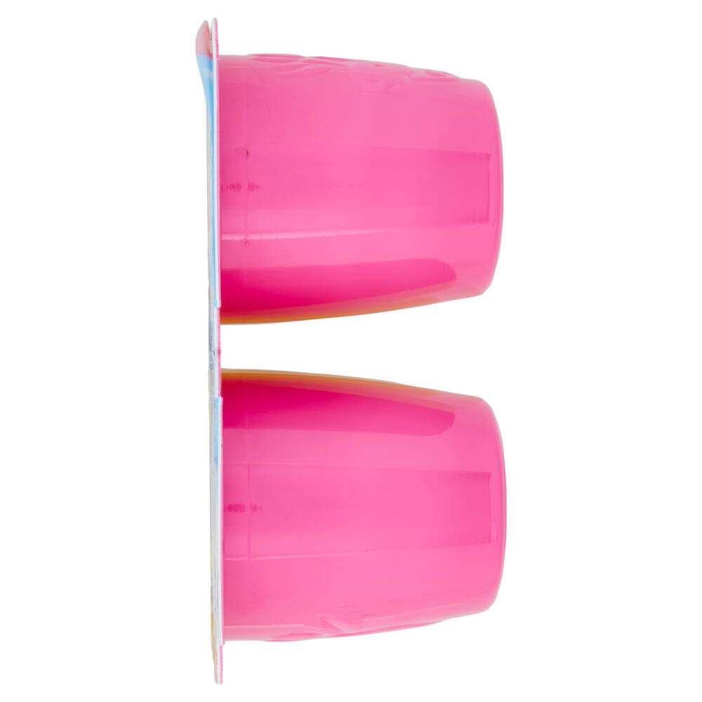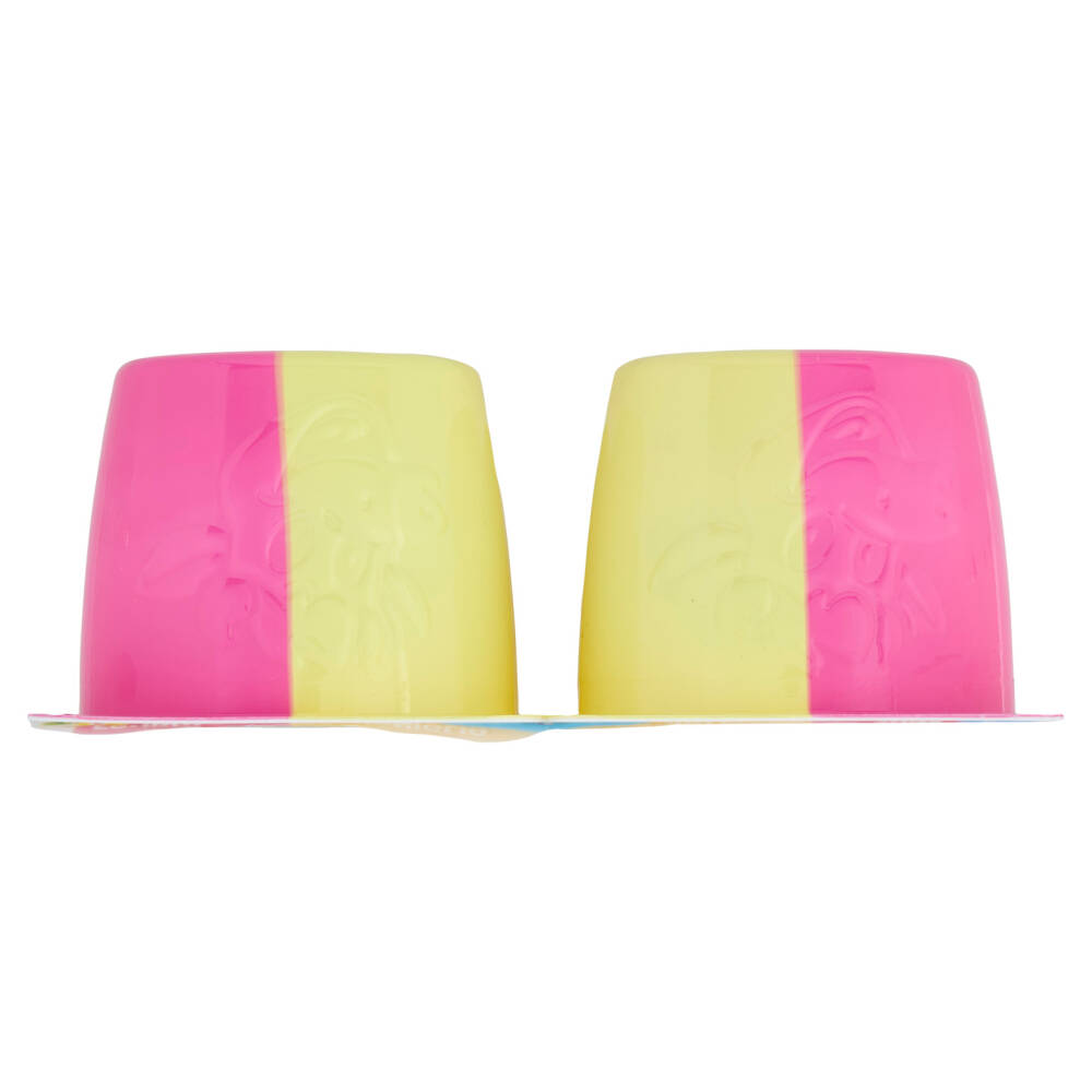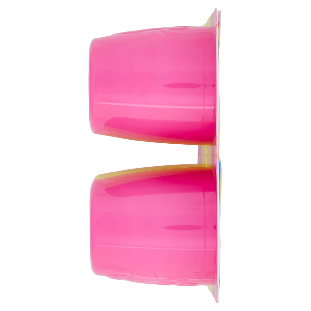 Formaggio fresco leggero 80% Zucchero Purea di fragola da concentrato 2,5% Amido modificato Concentrato di minerali del latte Aromi Addensanti (gomma di guar, farina di semi di carrube, gomma di xanthan) Sciroppo di zucchero caramellato Colorante: carminio Vitamina D Senza conservanti Senza glutine