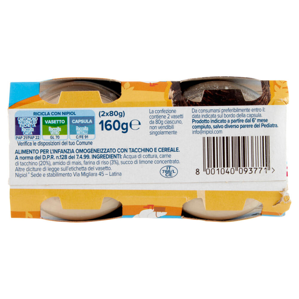 Acqua di cottura Carne di tacchino (25%) Amido di mais Farina di riso (3%) Succo concentrato di limone