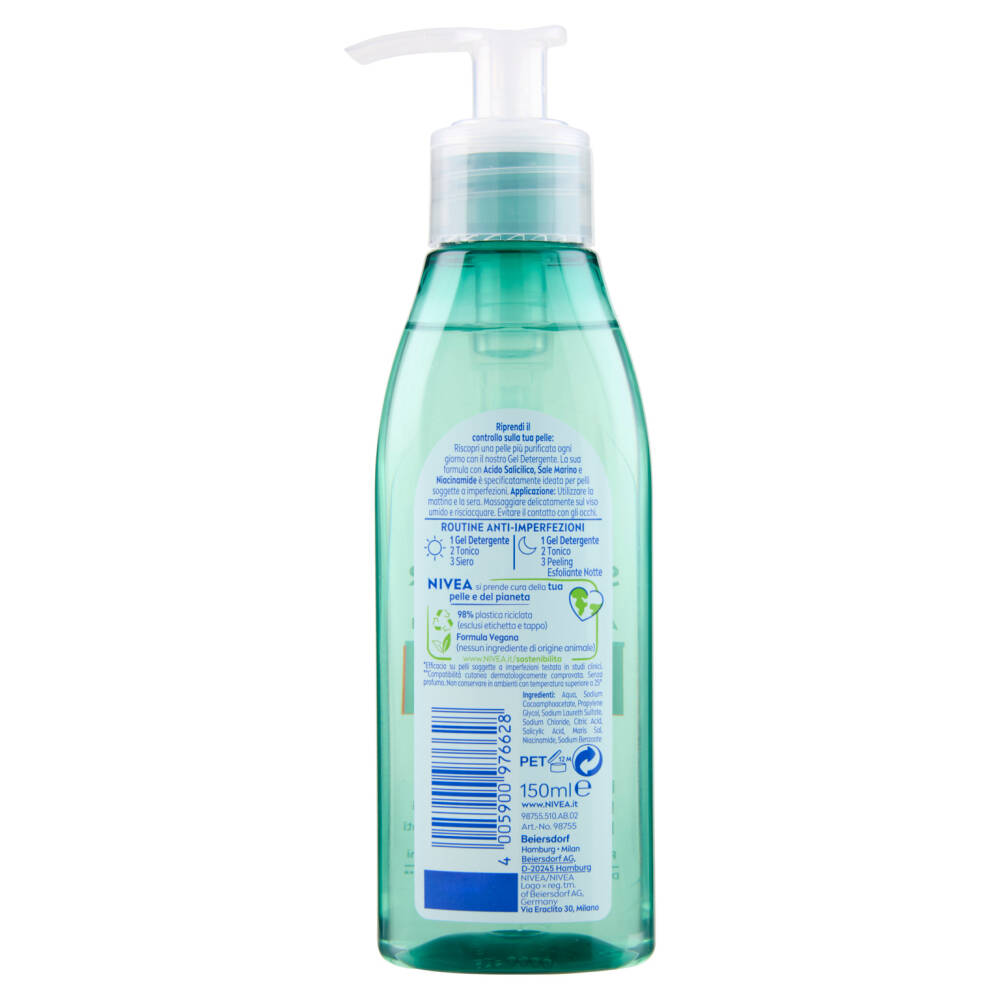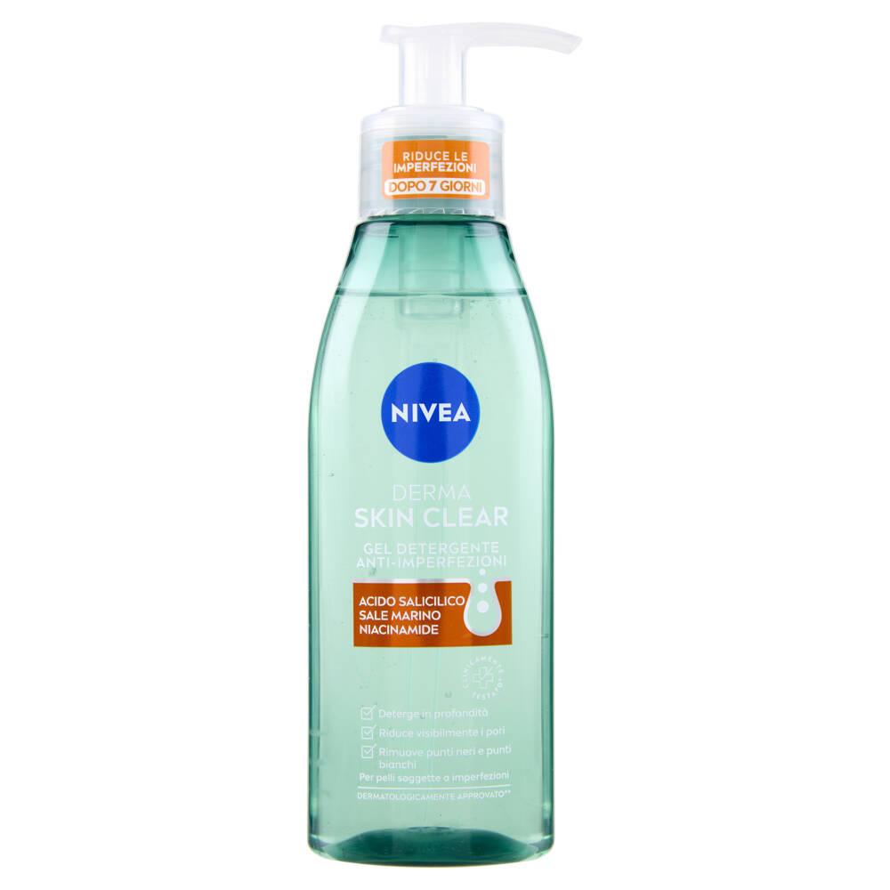 Riduce le imperfezioni - Dopo 7 giorni Acido salicilico - Sale marino - Niacinamide Clinicamente testato* - Deterge in profondità - Riduce visibilmente i pori - Rimuove punti neri e punti bianchi Dermatologicamente approvato** *Efficacia su pelli soggette a imperfezioni testata in studi clinici **Compatibilità cutanea dermatologicamente comprovata