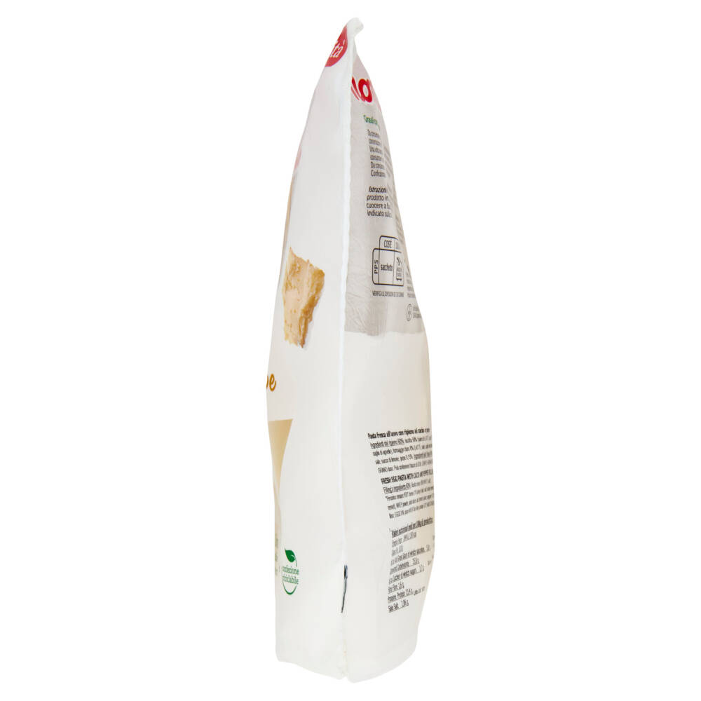 Ingredienti del ripieno 60%: ricotta 58% (siero di latte, sale), "Pecorino romano DOP" 21% (latte ovino, sale, caglio di agnello), formaggio duro 8% (latte, sale, caglio microbico), siero di latte in polvere, fiocchi di patate, sale, succo di limone, pepe 0,15% Ingredienti della pasta 40%: farina di grano tenero, uova 24%, semola di grano duro Può contenere tracce di soia, senape e semi di sesamo