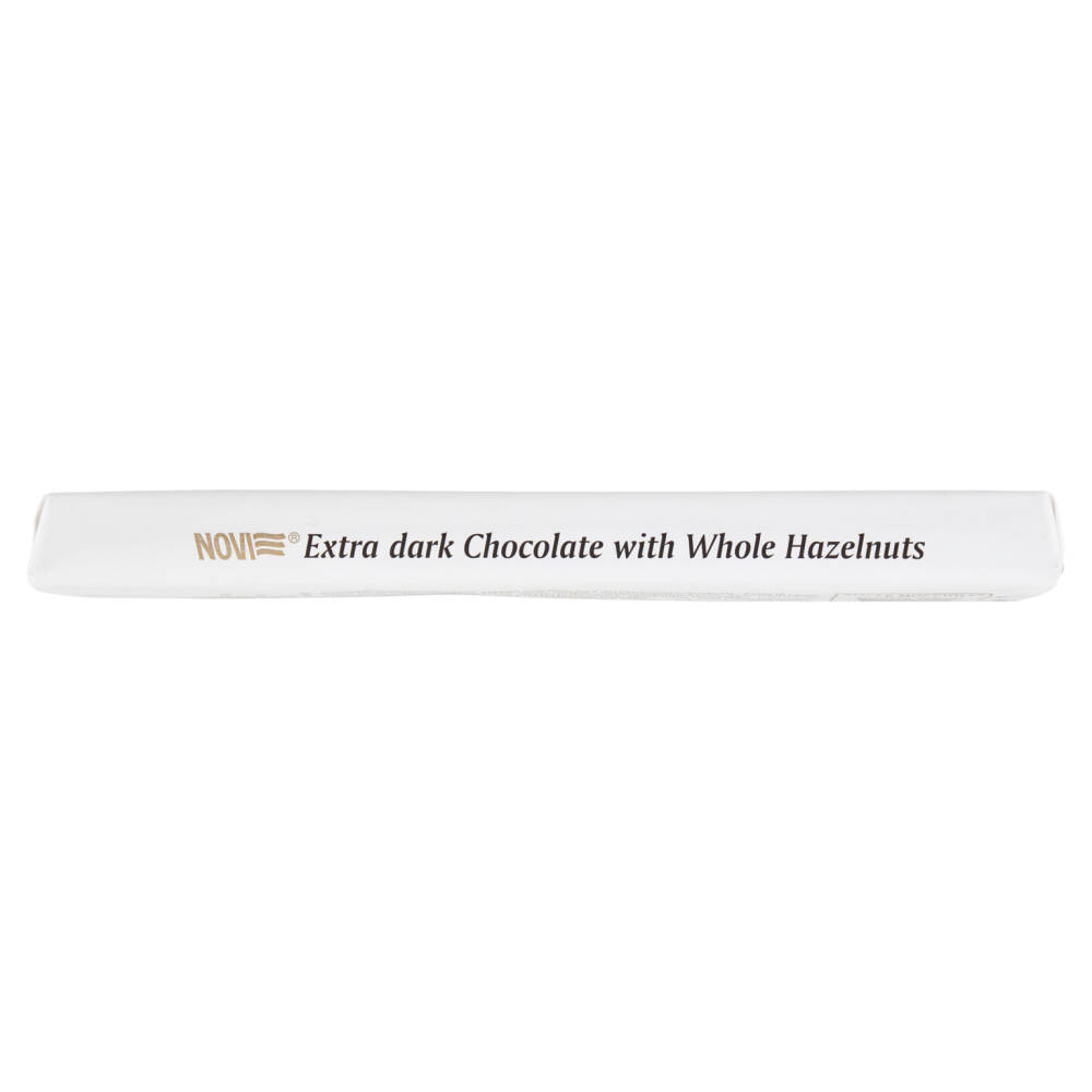 Pregiate nocciole intere delle nostre colline, eccellenza del territorio, si uniscono al Cioccolato Fondentenero Novi. Nasce così, nello stabilimento di Novi L. in Piemonte, il sorprendente Nocciolato Fondentenero.