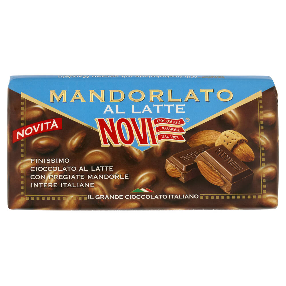 Pregiate mandorle italiane intere, accuratamente selezionate e tostate con maestria, si fondono con il finissimo cioccolato al latte Novi per offrire un'esperienza di gusto intensa e sorprendente. Novi - il grande cioccolato italiano.