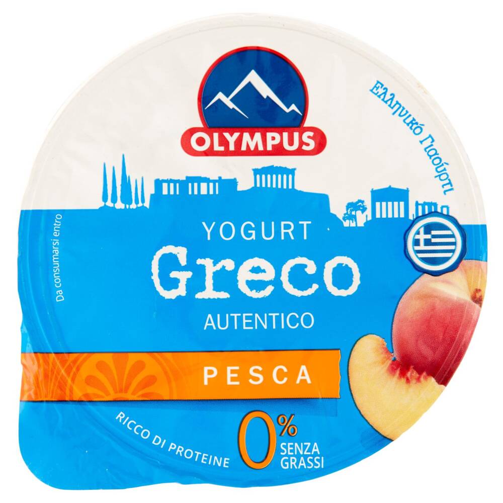 Yogurt Greco autentico senza grassi con pezzi di pesca