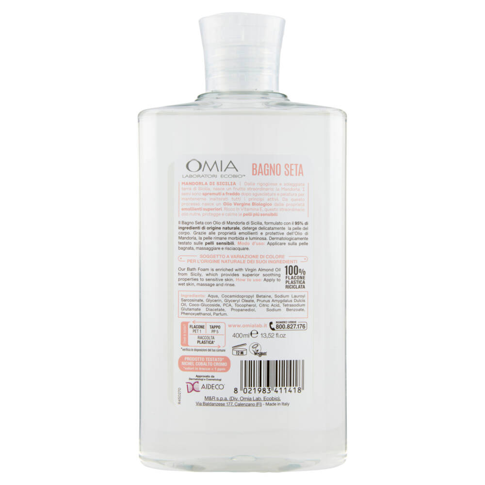 Il Bagno Seta con Olio di Mandorla di Sicilia, formulato con il 95% di ingredienti di origine naturale, deterge delicatamente la pelle del corpo. Grazie alle proprietà emollienti e protettive dell'Olio di Mandorla, la pelle rimane morbida e luminosa. Dermatologicamente testato sulle pelli sensibili.