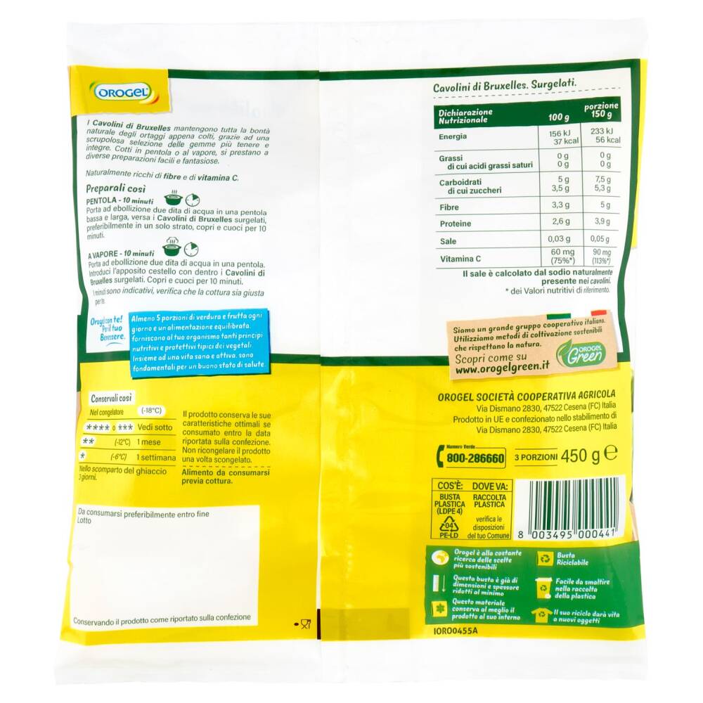 | Il sale è calcolato dal sodio naturalmente presente nei cavolini | ||||