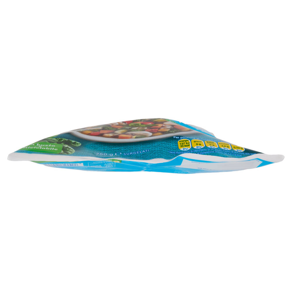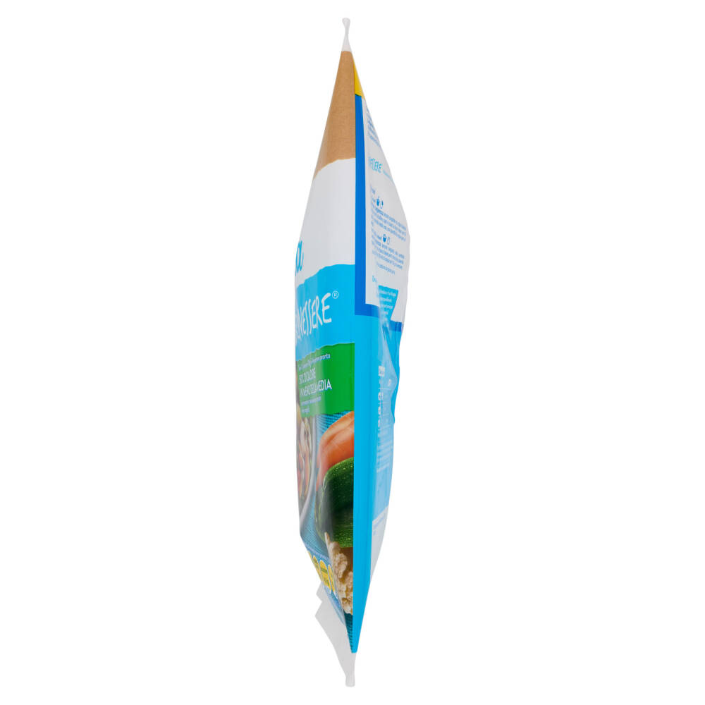 Vegetali in pezzi 90% (carote, zucchine, pomodori, fagiolini, zucca, cavolfiore, sedano, spinaci, funghi prataioli coltivati (Agaricus bisporus), porro, cipolla, broccoli, basilico)