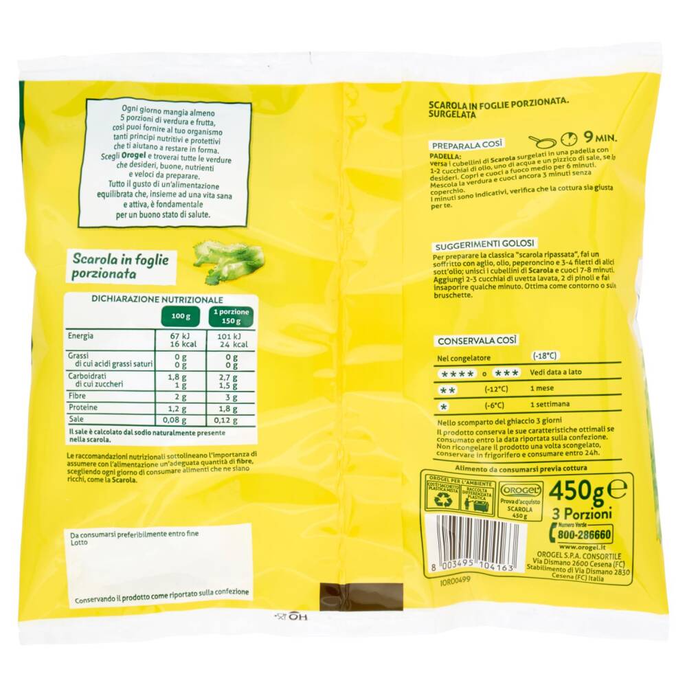 | Il sale è calcolato dal sodio naturalmente presente nella scarola |