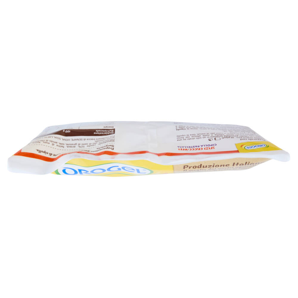 Cipolla 52% Acqua Farina di mais Farina di frumento Olio di semi di girasole Sale Amido di frumento Aroma naturale Può contenere tracce di senape, uova, soia, latte e derivati