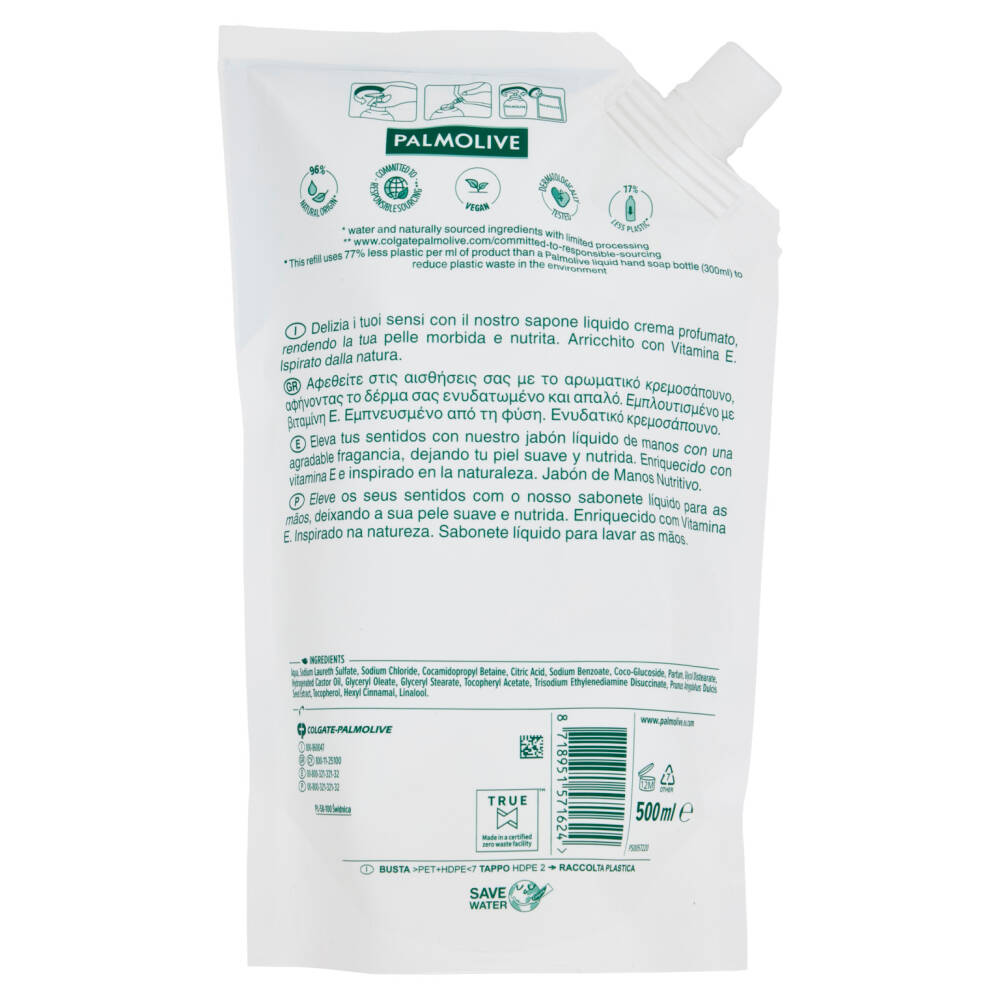2x Refill 2 x 250 ml 77% Less plastic* 96% Natural origin** Almond Milk Nourishing Hand Wash with Vitamin E * This refill uses 77% less plastic per ml of product than a Palmolive liquid hand soap bottle (300ml) to reduce plastic waste in the environment ** water and naturally sourced ingredients with limited processing
