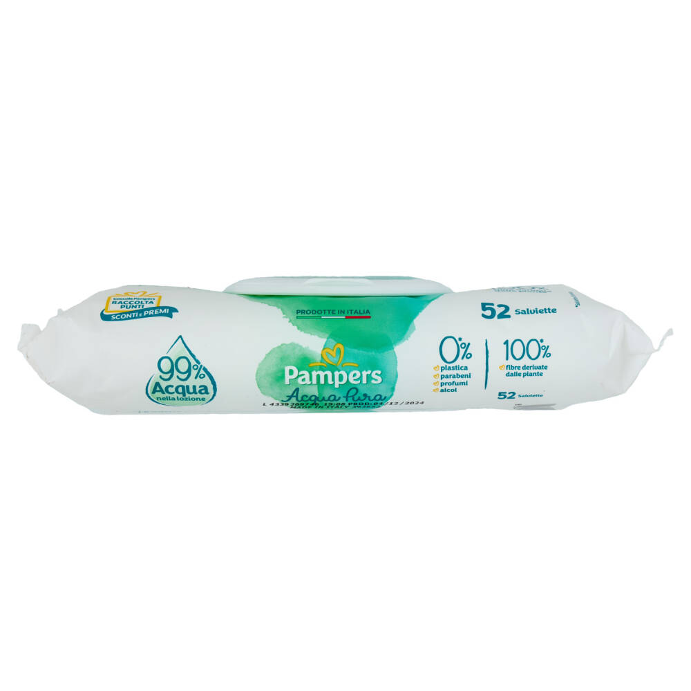99% Acqua nella lozione 0*% - Plastica - Parabeni - Profumi - Alcol 100*% - Fibre derivate dalle piante Prodotte in Italia 52 Salviette *Salviettina 0% plastica
