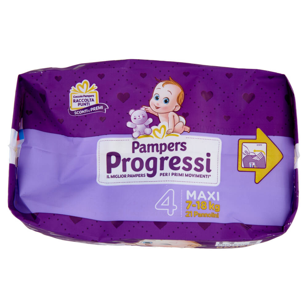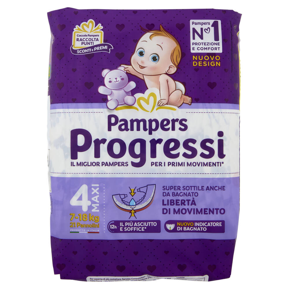 Pampers N°1 protezione e comfort Nuovo design Il miglior Pampers per i primi movimenti* 4 | Maxi 7-18 kg 21 Pannolini Prodotto in Italia Super sottile anche da bagnato Libertà di movimento 12h - Il più asciutto e soffice* Nuovo indicatore di bagnato *rispetto ai pannolini tradizionali Pampers più venduti