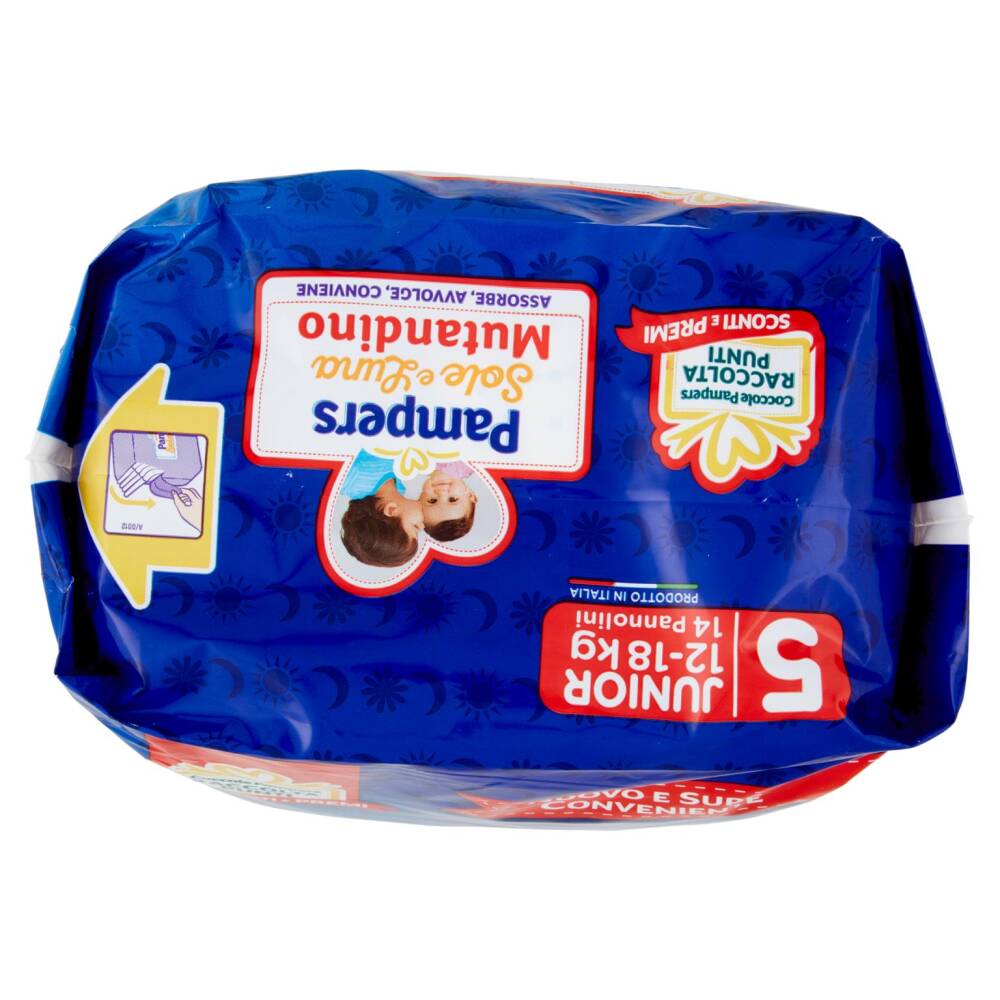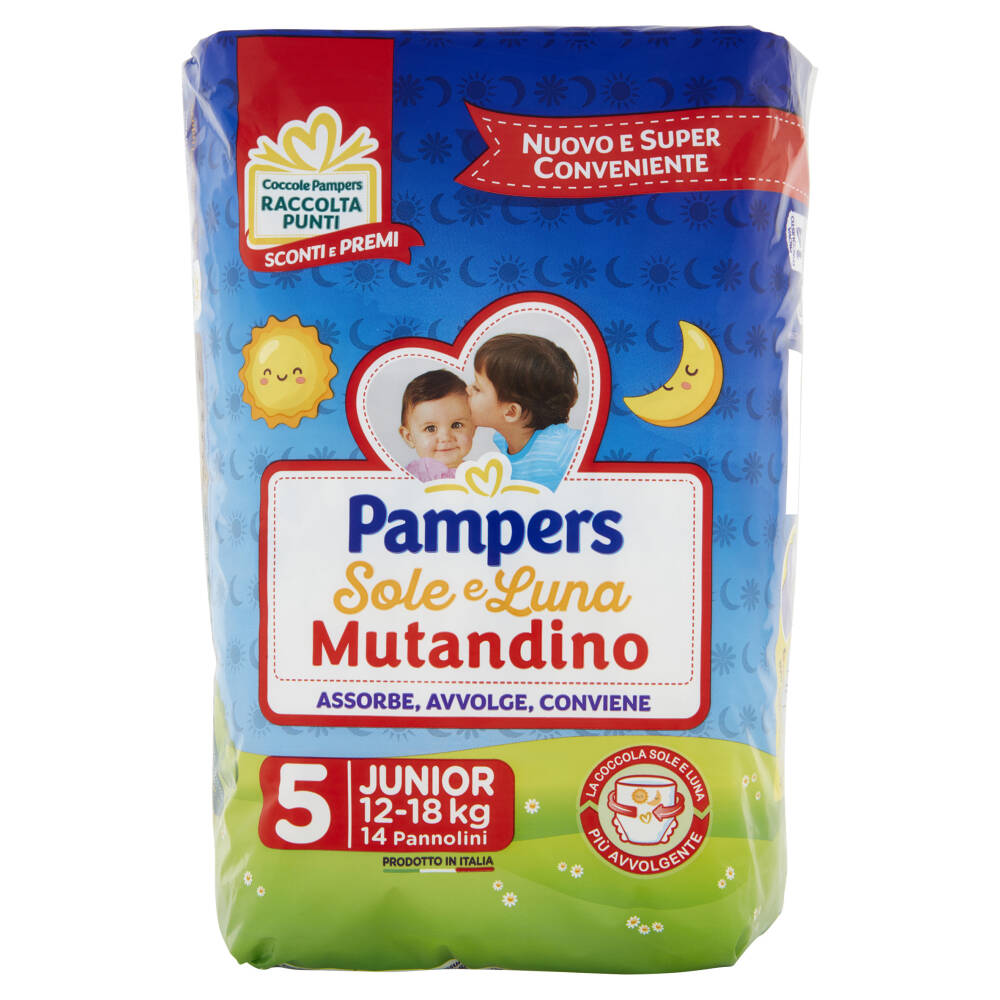 Nuovo e super conveniente Assorbe, avvolge, conviene 5 Junior 12-18 kg 14 Pannolini Prodotto in Italia La coccola Sole e Luna più avvolgente