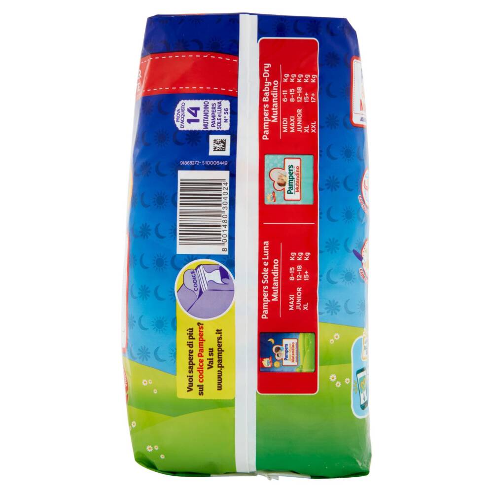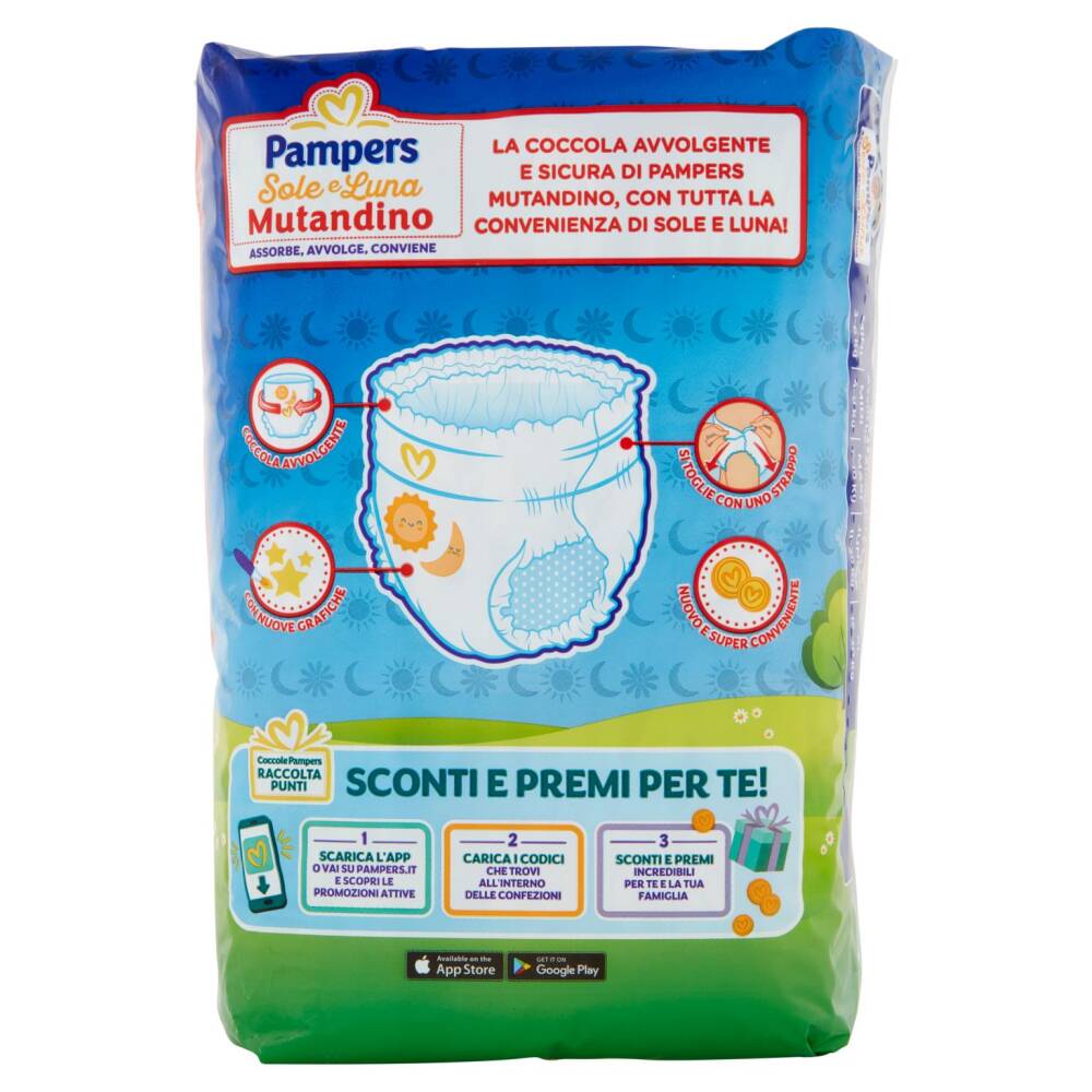 La coccola avvolgente e sicura di Pampers mutandino, con tutta la convenienza di Sole e Luna!