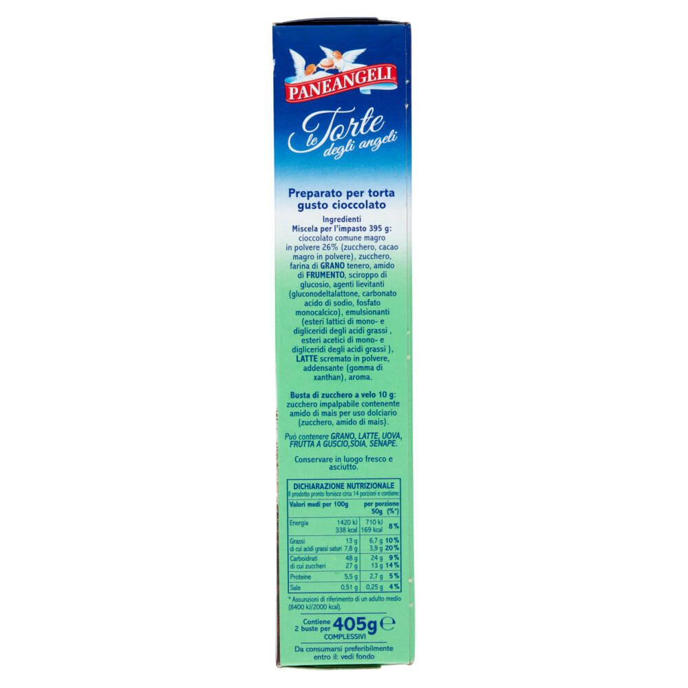 Miscela per l'impasto 395 g: cioccolato comune magro in polvere 26% (zucchero, cacao magro in polvere), zucchero, farina di grano tenero, amido di frumento, sciroppo di glucosio, agenti lievitanti (gluconodeltalattone, carbonato acido di sodio, fosfato monocalcico), emulsionanti (esteri lattici di mono- e digliceridi degli acidi grassi, esteri acetici di mono- e digliceridi degli acidi grassi), latte scremato in polvere, addensante (gomma di xanthan), aroma