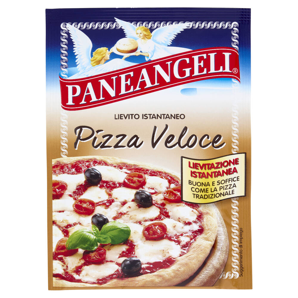 Pizza Veloce Paneangeli è un lievito istantaneo arricchito con lievito di birra disidratato, che consente di preparare in pochi minuti una pizza buonissima con il sapore tipico di quella lievitata naturalmente.
