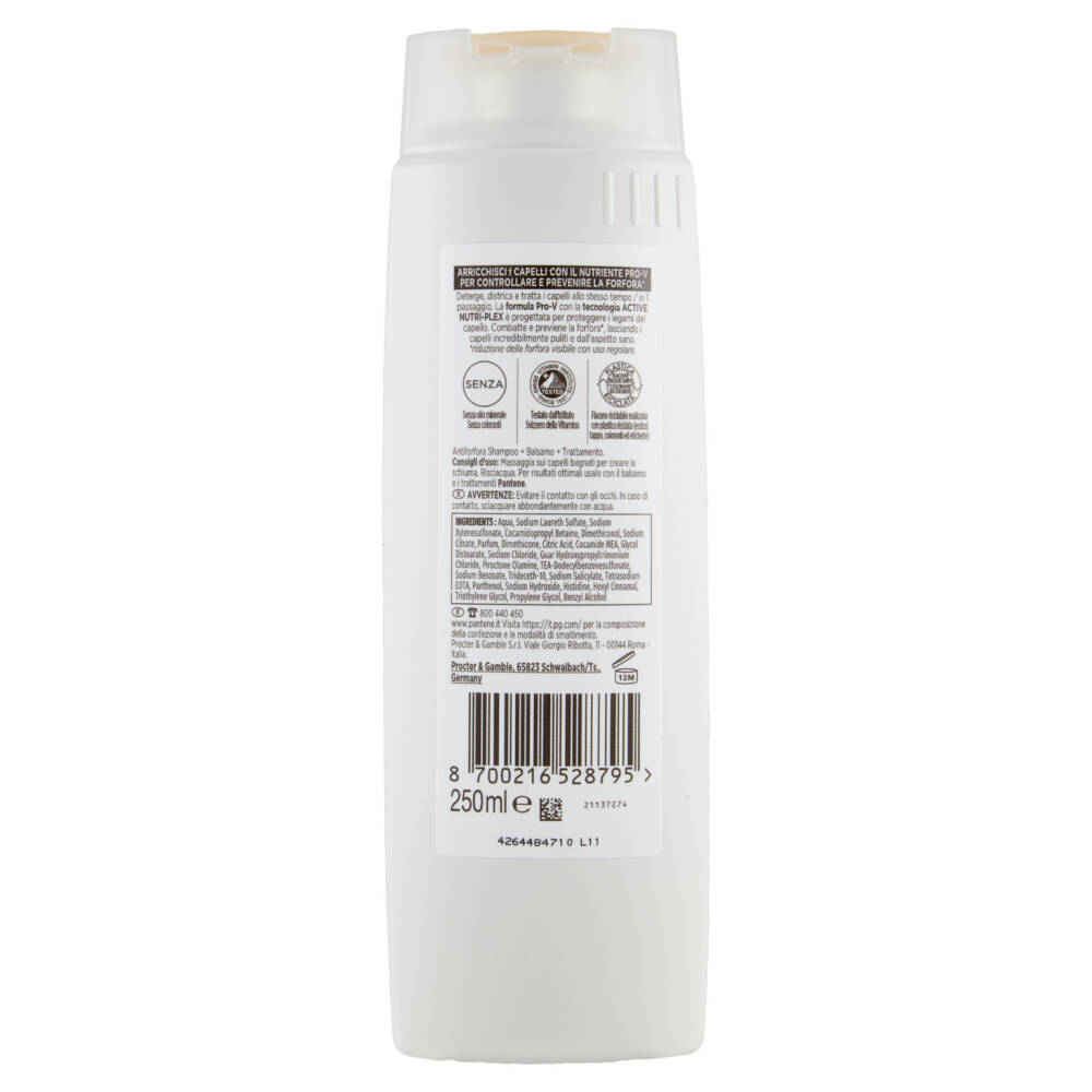 Deterge, districa e tratta i capelli allo stesso tempo / in 1 passaggio. La formula Pro-V con la tecnologia Active Nutri-Plex è progettata per proteggere i legami del capello. Combatte e previene la forfora*, lasciando i capelli incredibilmente puliti e dall'aspetto sano.