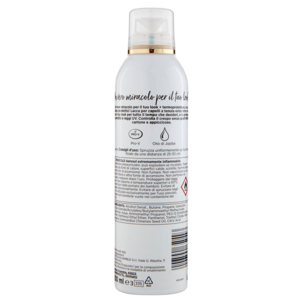 Un vero miracolo per il tuo look + termoprotettore, in un unico prodotto! Lacca per capelli a tenuta extra forte che fissa il tuo look per tutto il tempo che desideri, e lo protegge da umidità e raggi UV. Controlla il crespo senza quell'effetto cartone e appiccicoso.