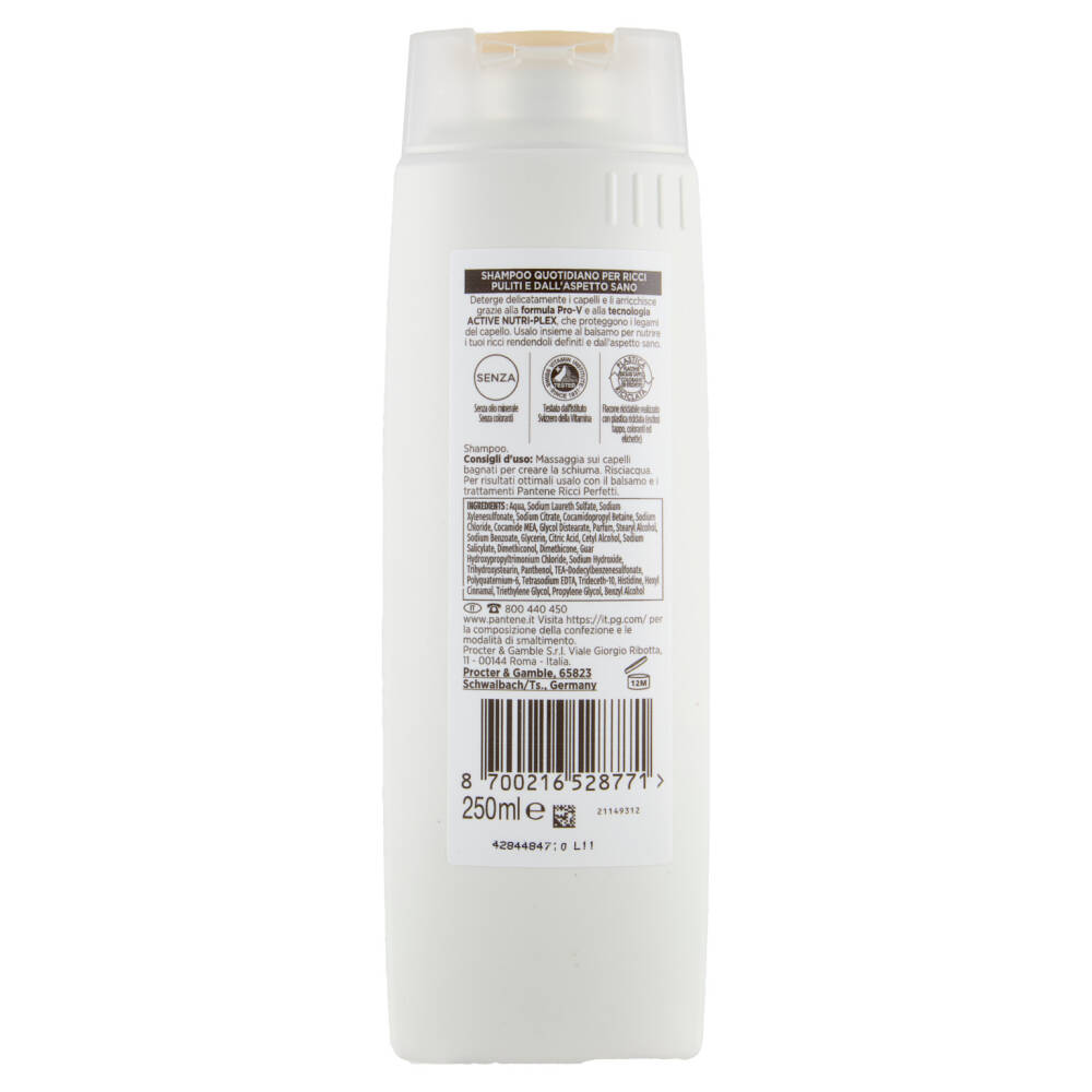 Consigli d'uso: Massaggia sui capelli bagnati per creare la schiuma. Risciacqua. Per risultati ottimali usalo con il balsamo e i trattamenti Pantene Ricci Perfetti.