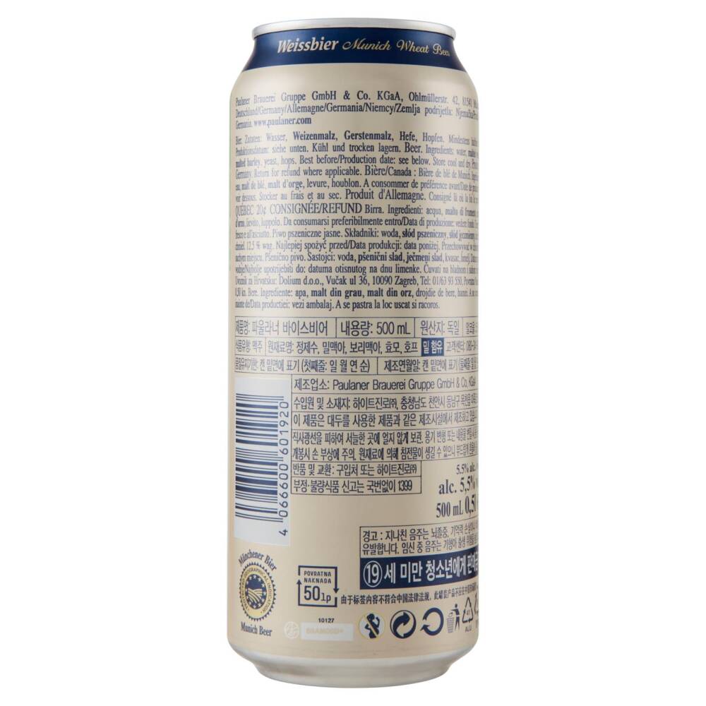 Paulaner Weissbier Munich Wheat Beer IGP 0,5 l