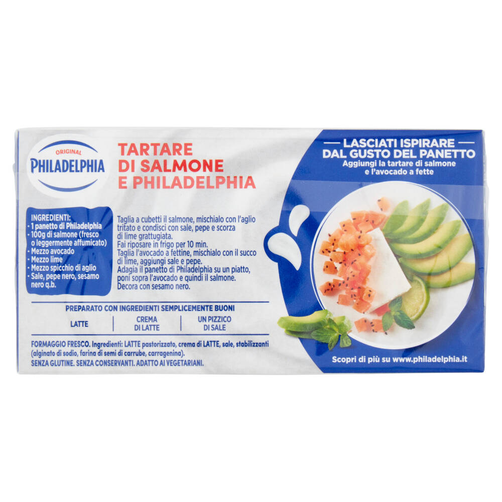 Adagia il panetto di Philadelphia su un piatto, poni sopra l'avocado e quindi il salmone.
