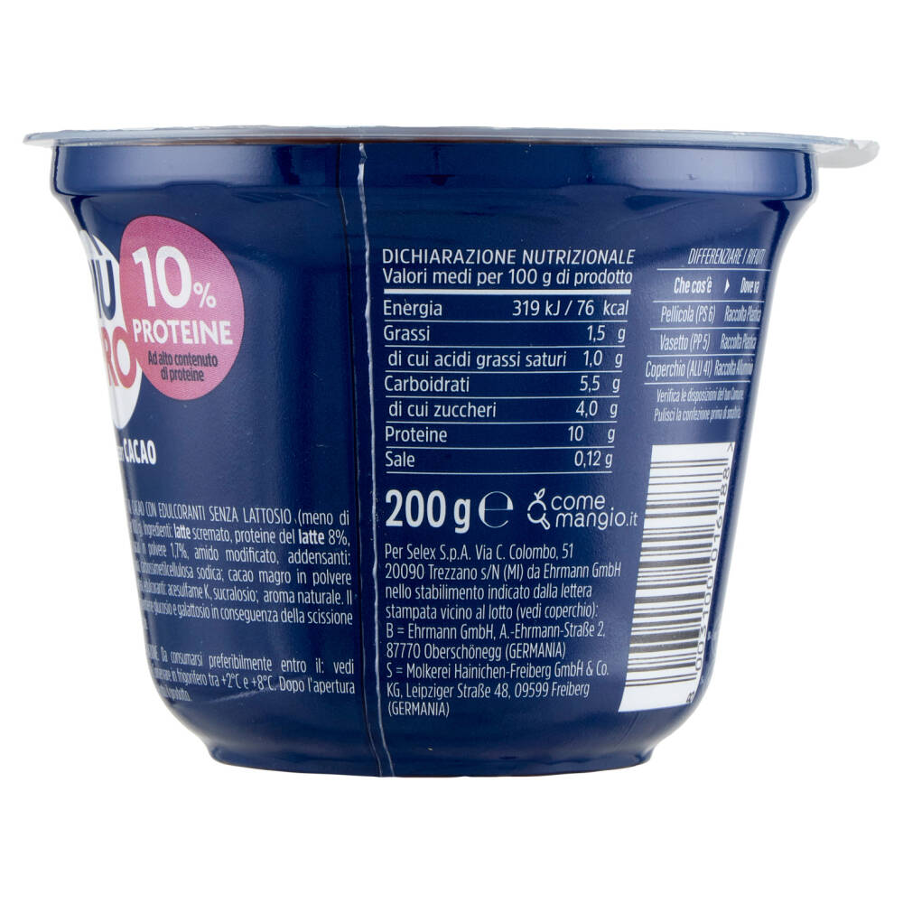 Latte scremato Proteine del latte 8% Panna Cacao in polvere 1,7% Amido modificato Addensanti: carragenina, carbossimetilcellulosa sodica Cacao magro in polvere 0,2% Lattasi Edulcoranti: acesulfame K, sucralosio Aroma naturale Il prodotto contiene glucosio e galattosio in conseguenza della scissione del lattosio