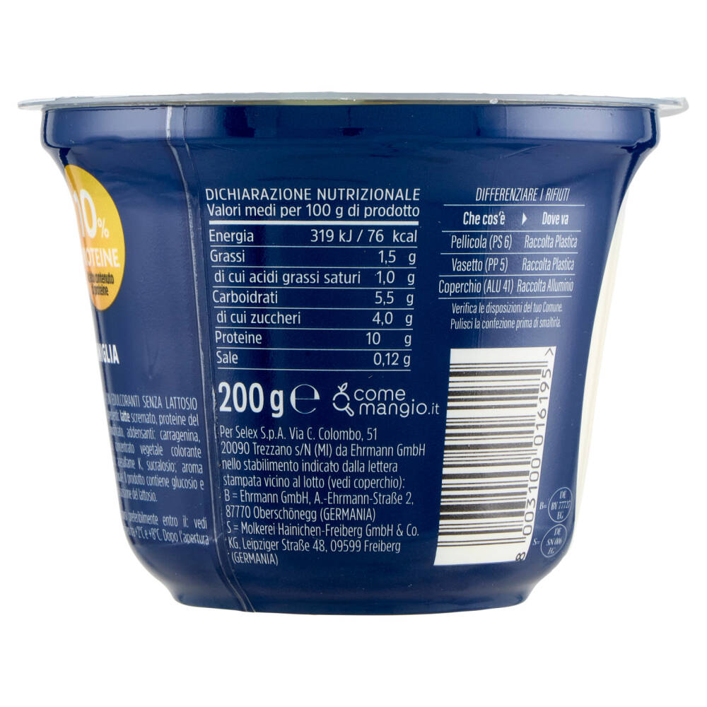 10% Proteine Ad alto contenuto di proteine Senza zuccheri aggiunti* A basso contenuto di grassi Senza Lattosio meno di 0,01 g per 100 g *Contiene naturalmente zuccheri