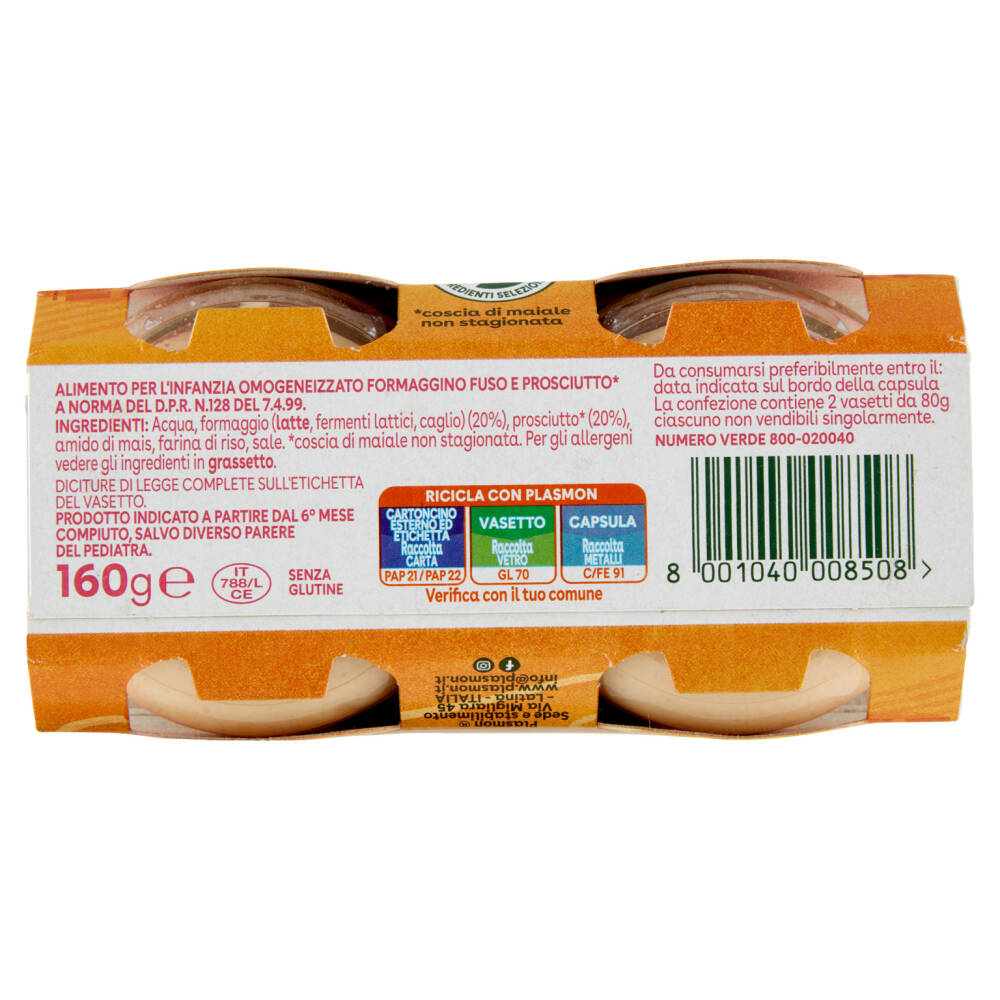 Alimento per l'infanzia omogeneizzato formaggino fuso e prosciutto*