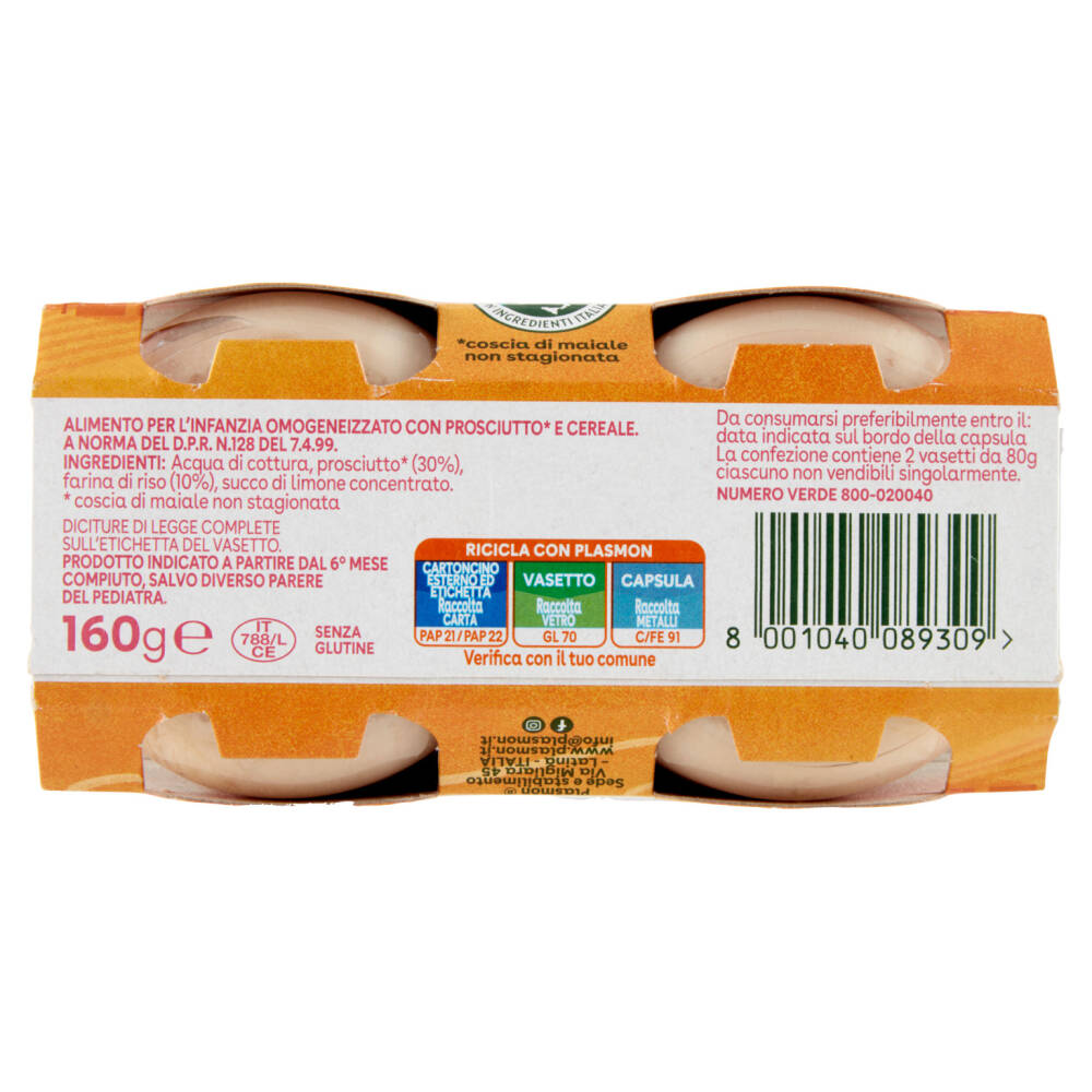 Alimento per l'infanzia omogeneizzato con prosciutto* e cereale