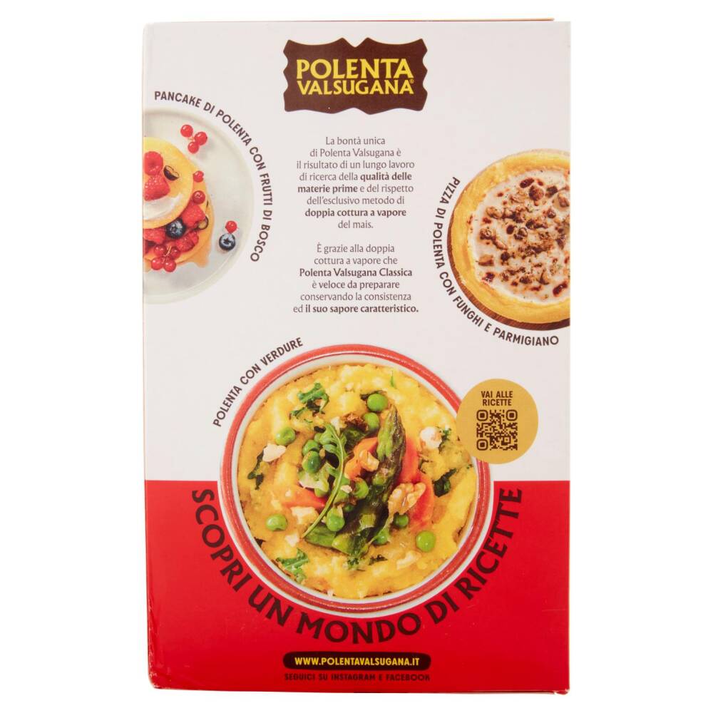 È grazie alla doppia cottura a vapore che Polenta Valsugana Classica è veloce da preparare conservando la consistenza ed il suo sapore caratteristico.
